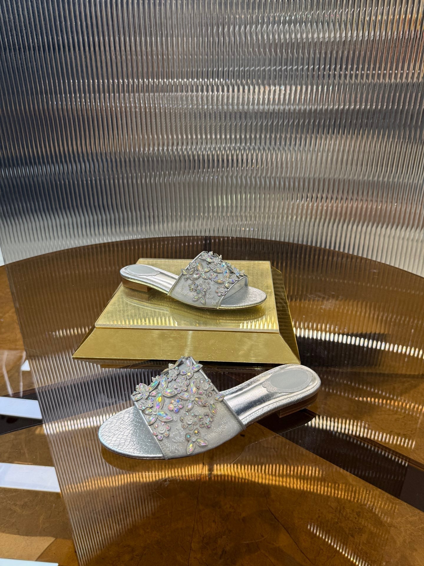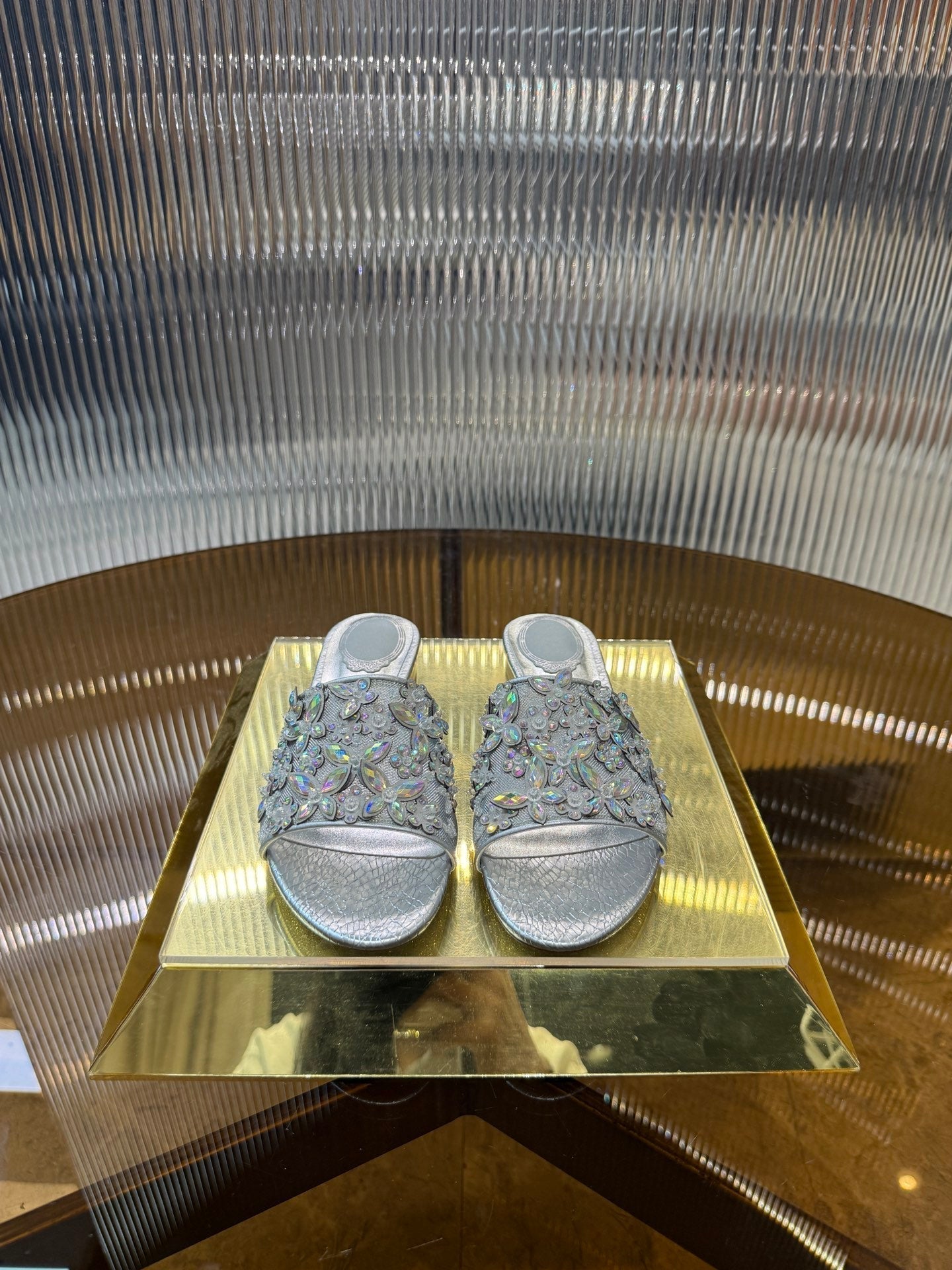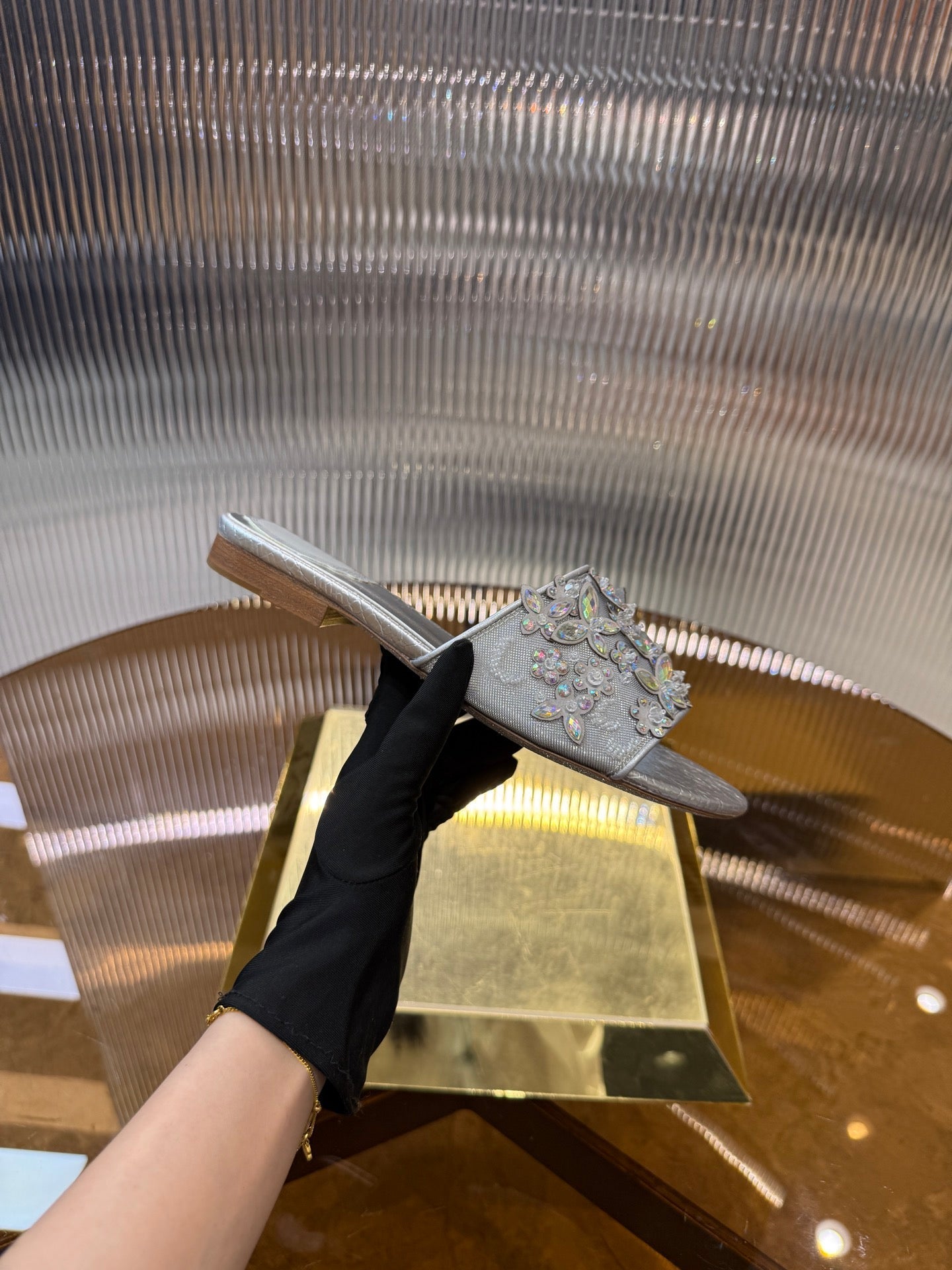 RC 25C Butterfly Flower Flat Sandals Slippers Sliver Sheepskin Rhinestone 275770