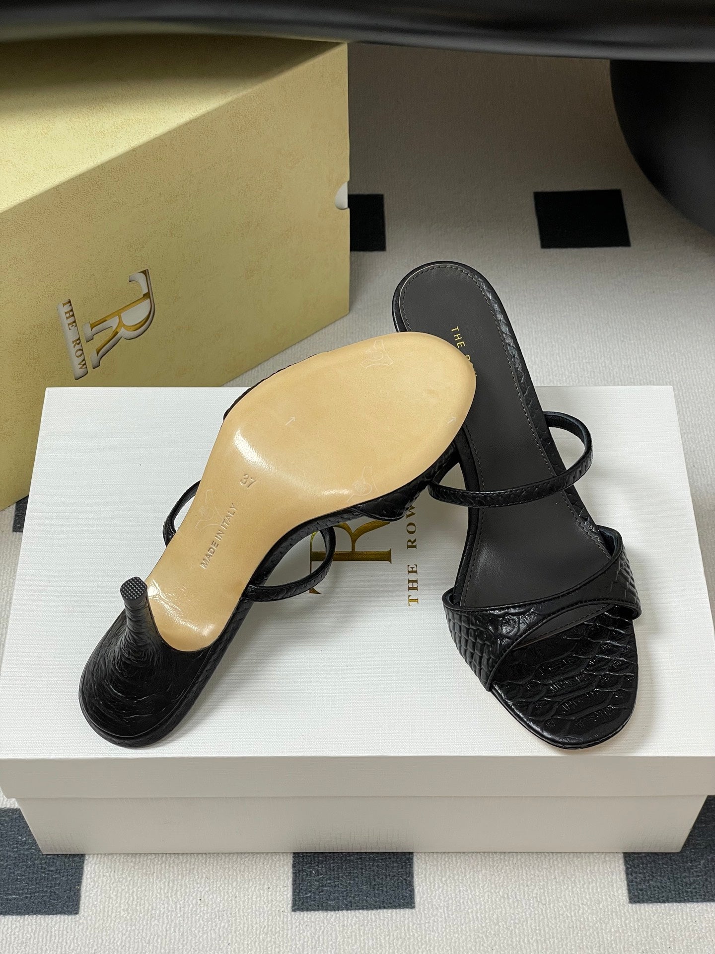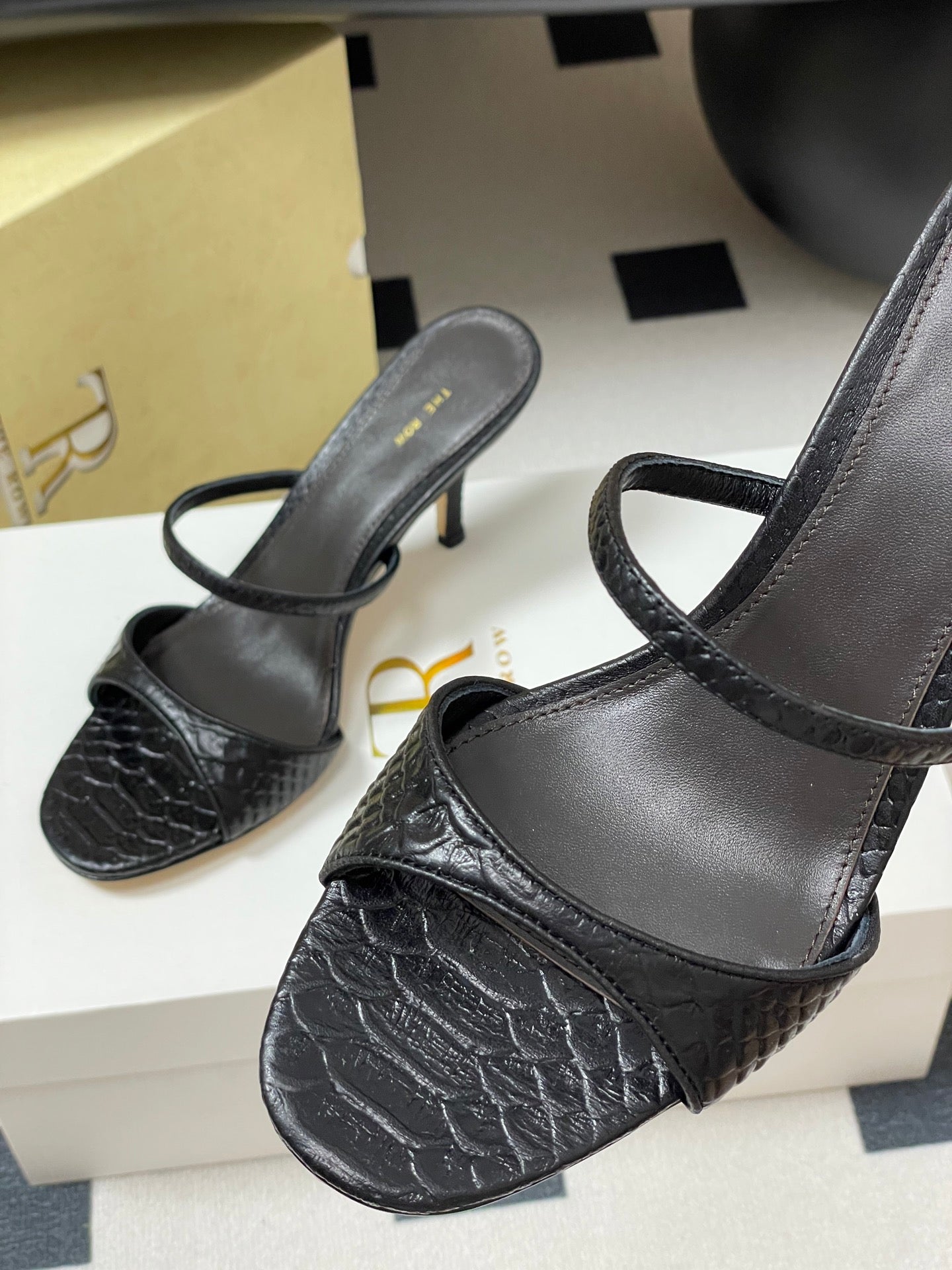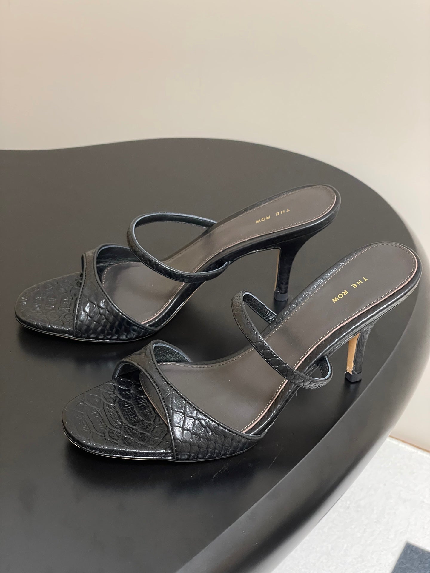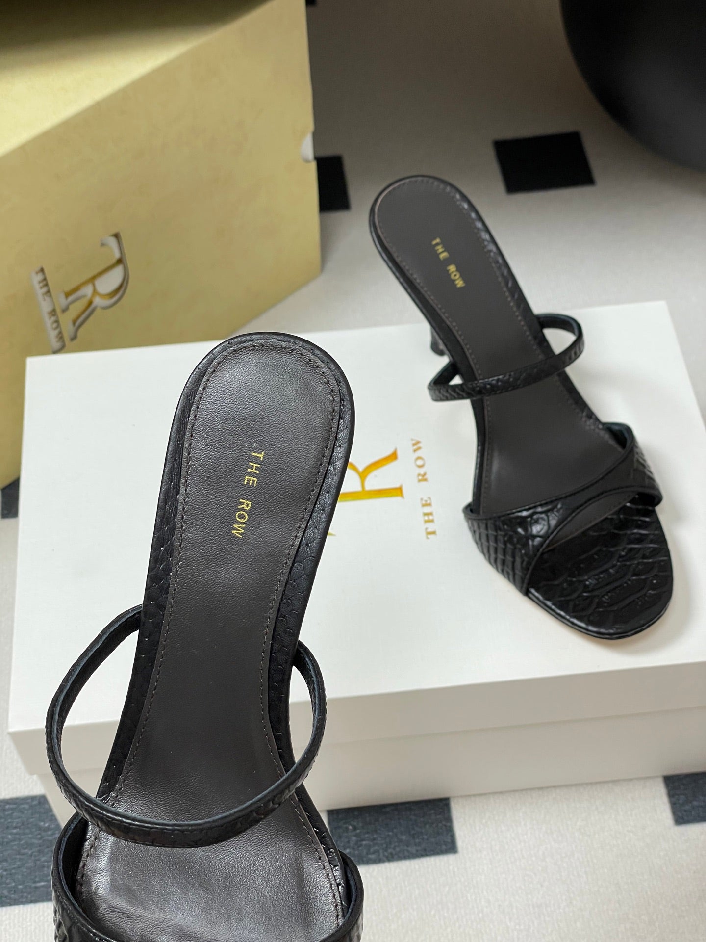 The Row 25S Strap High Heel Mule Sandals 85mm Black Snake Pattern Cowhide 286205
