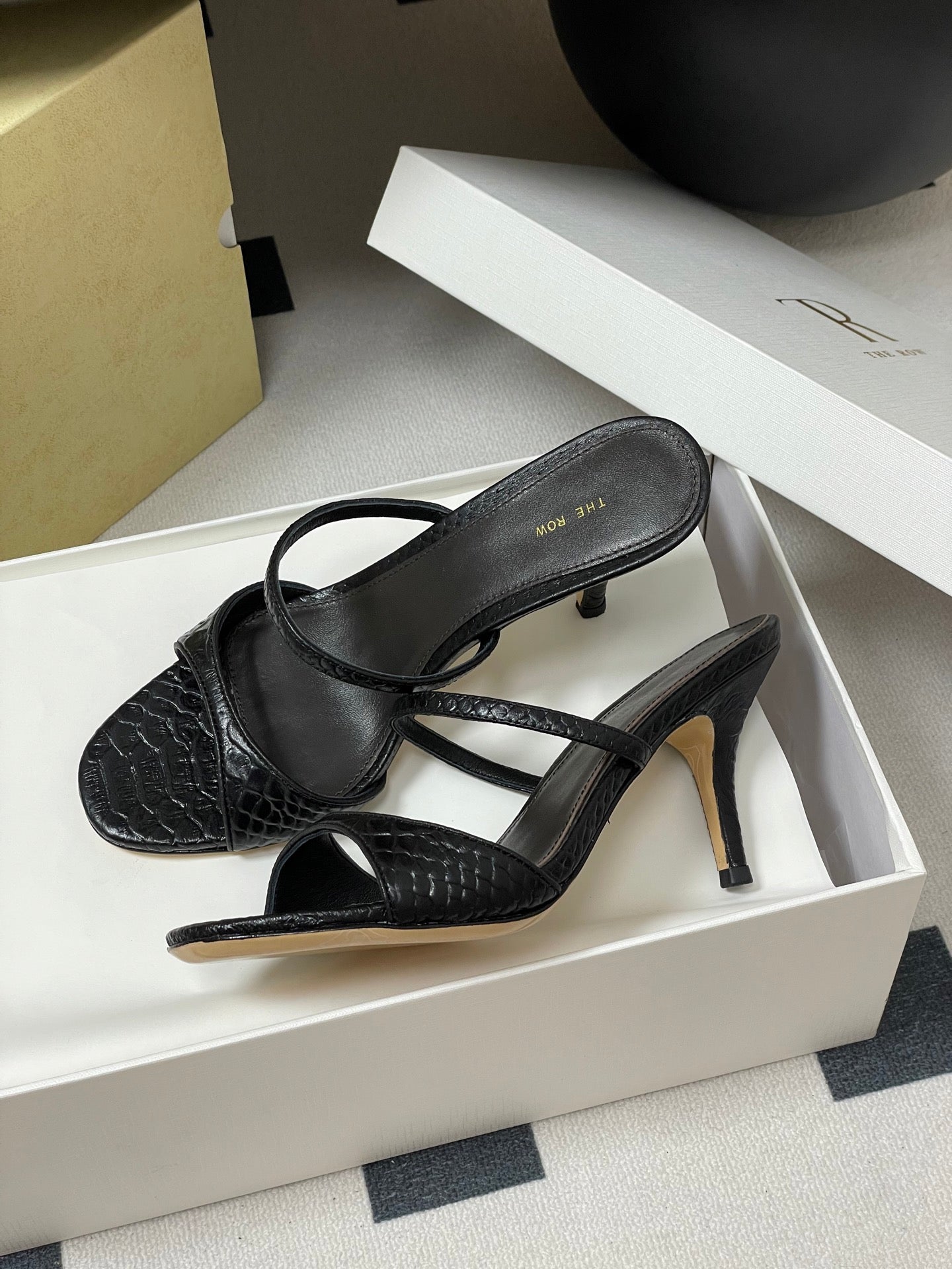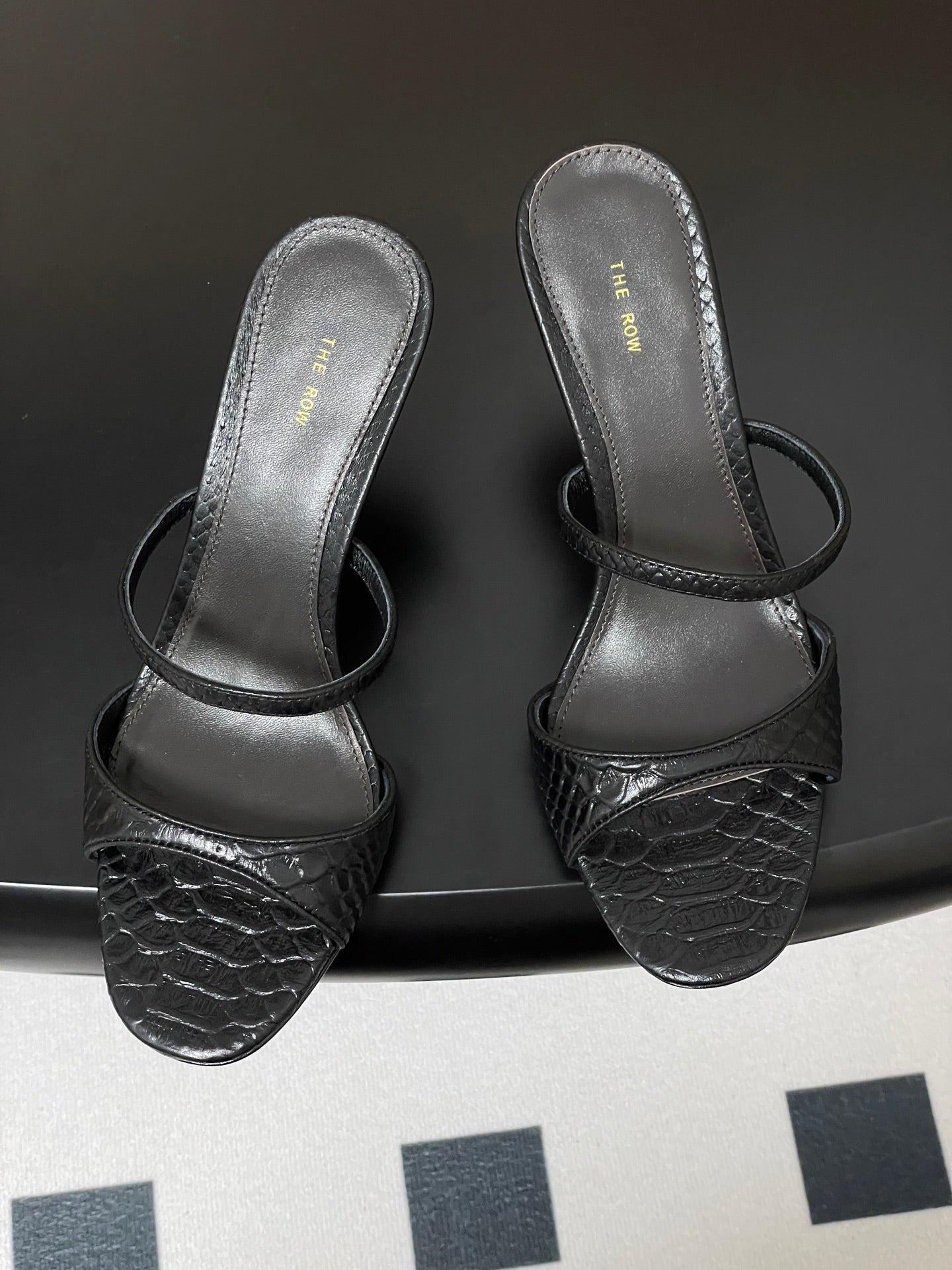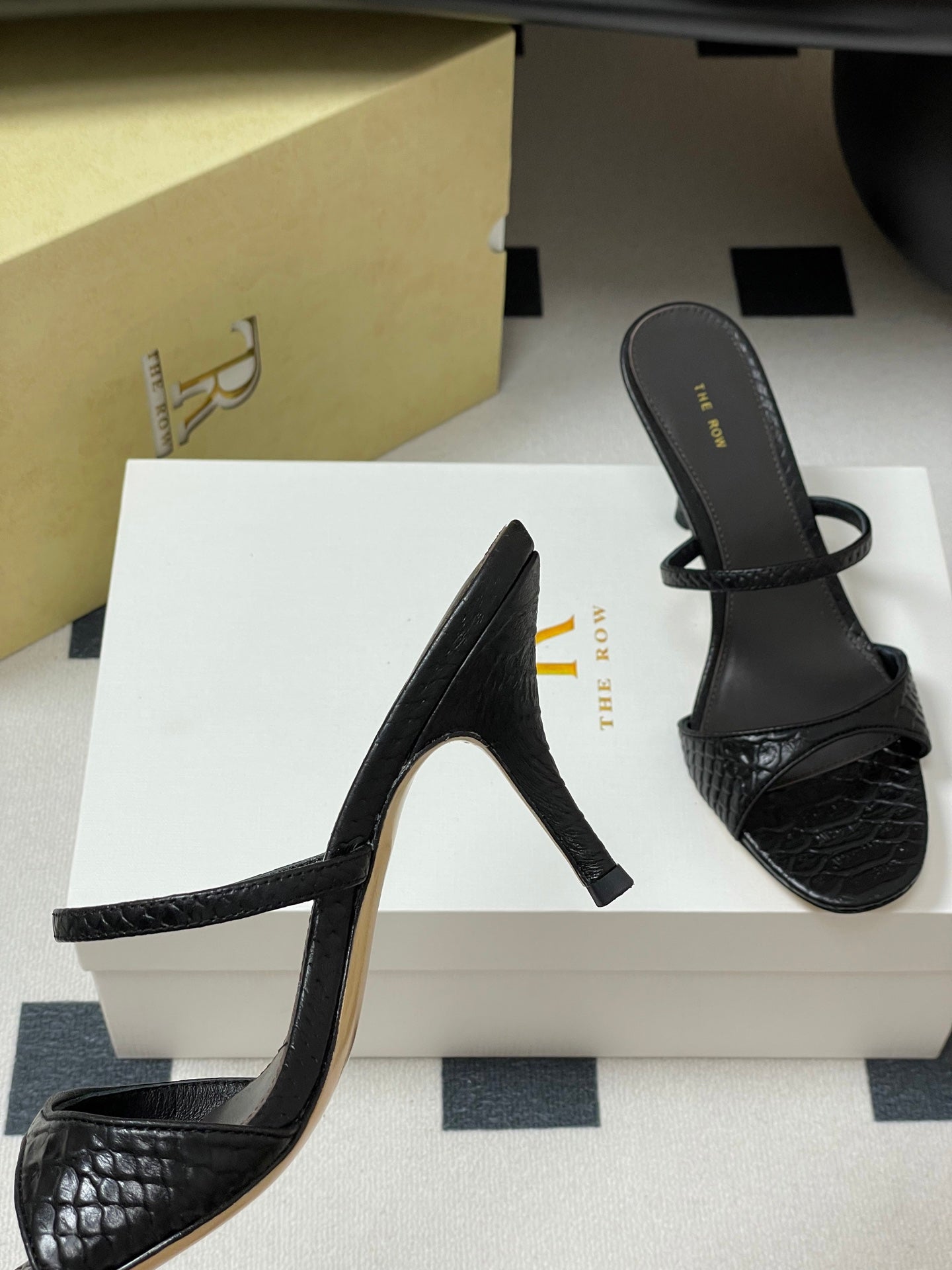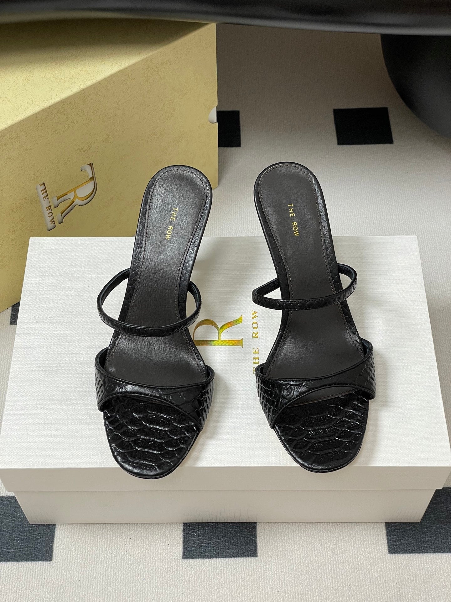 The Row 25S Strap High Heel Mule Sandals 85mm Black Snake Pattern Cowhide 286205
