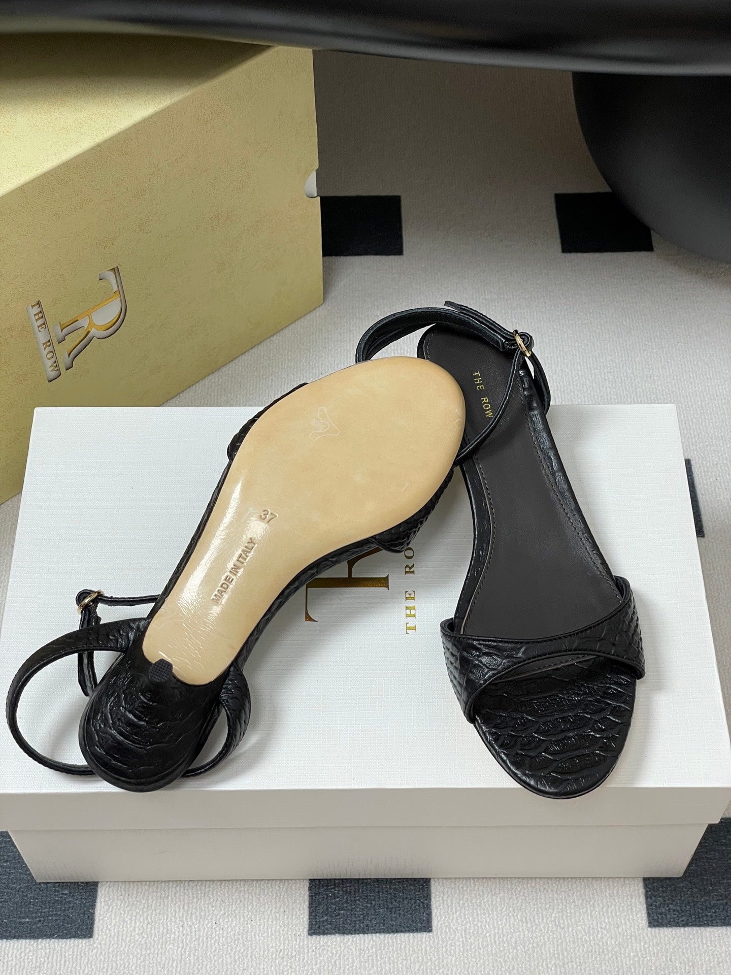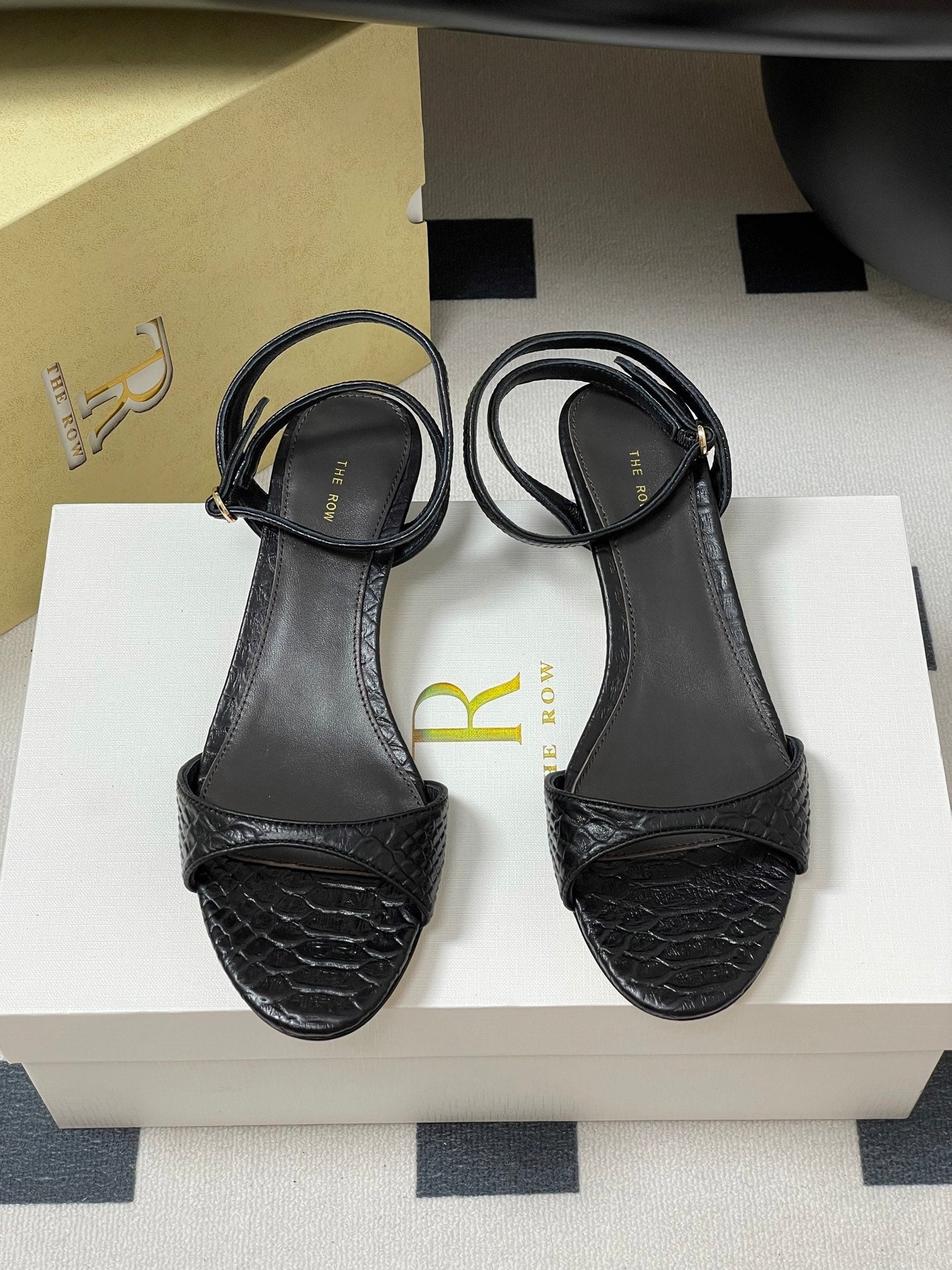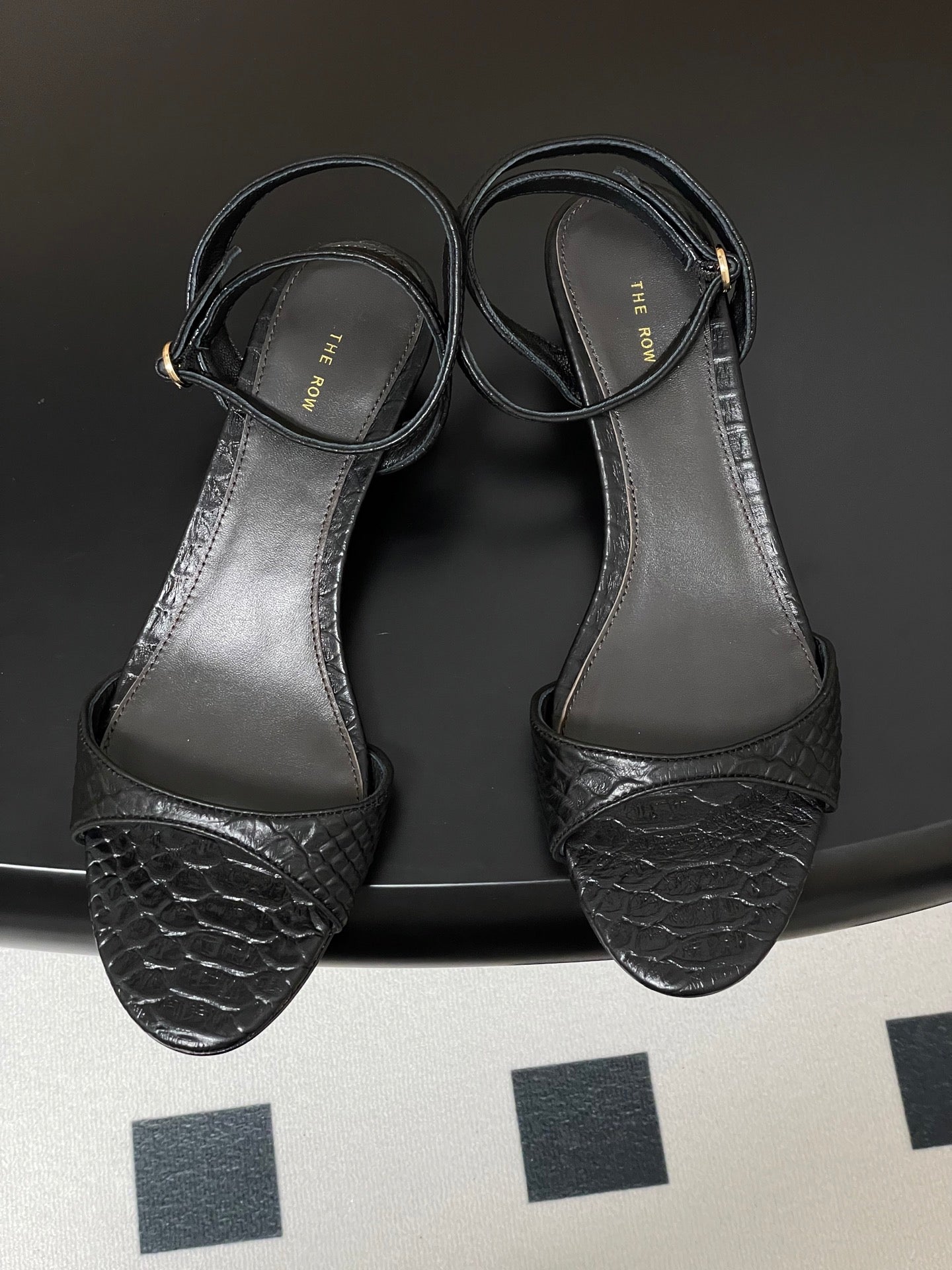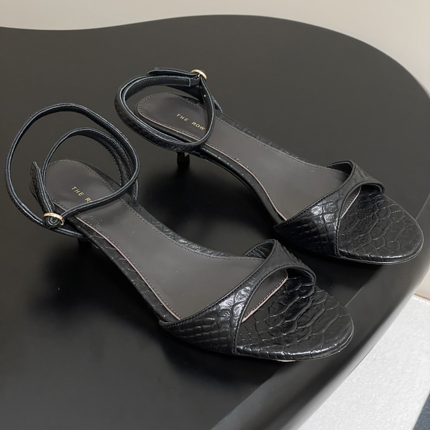 The Row 25S Strap High Heel Sandals 35mm Black Snake Pattern Cowhide 286197
