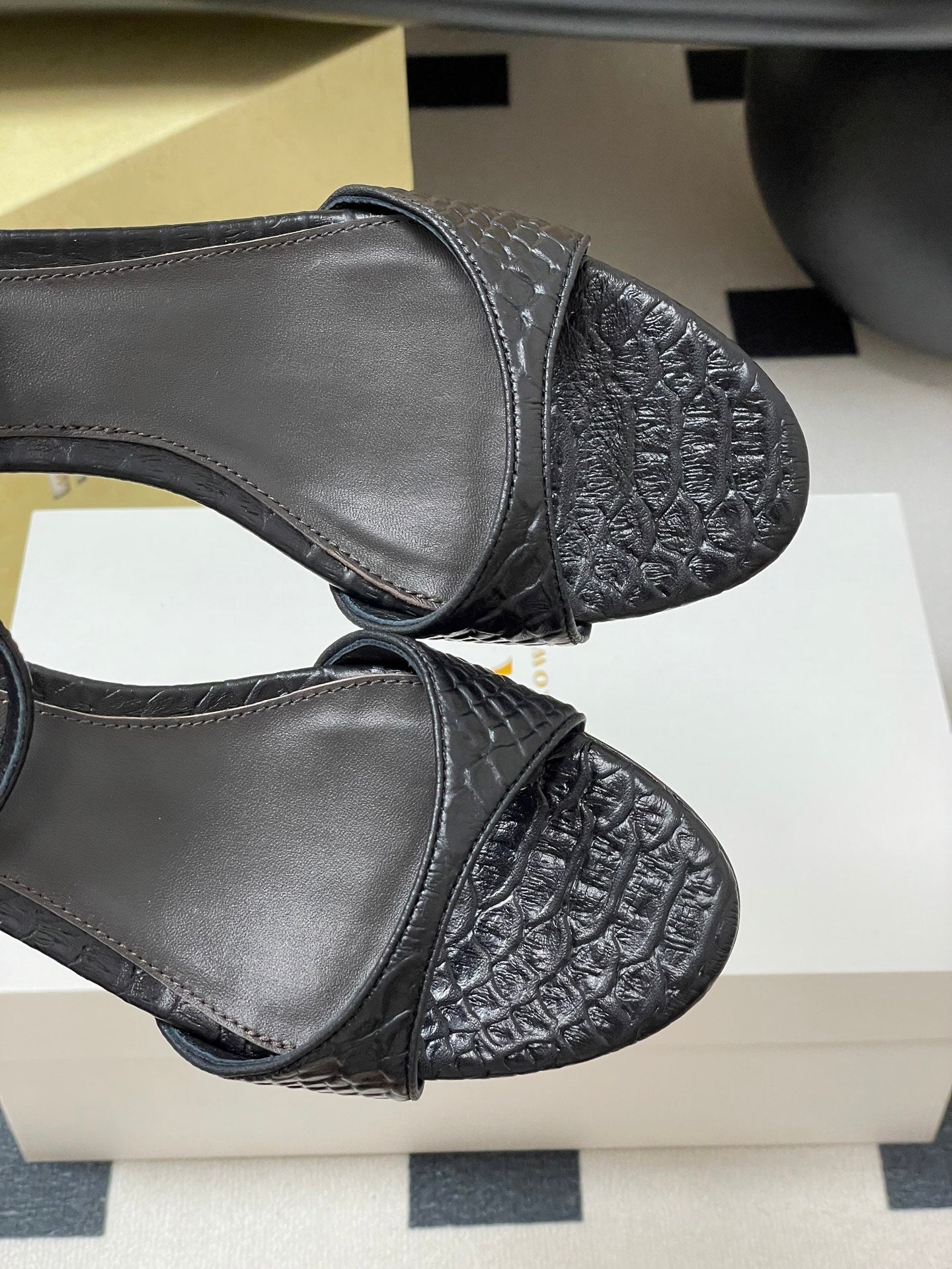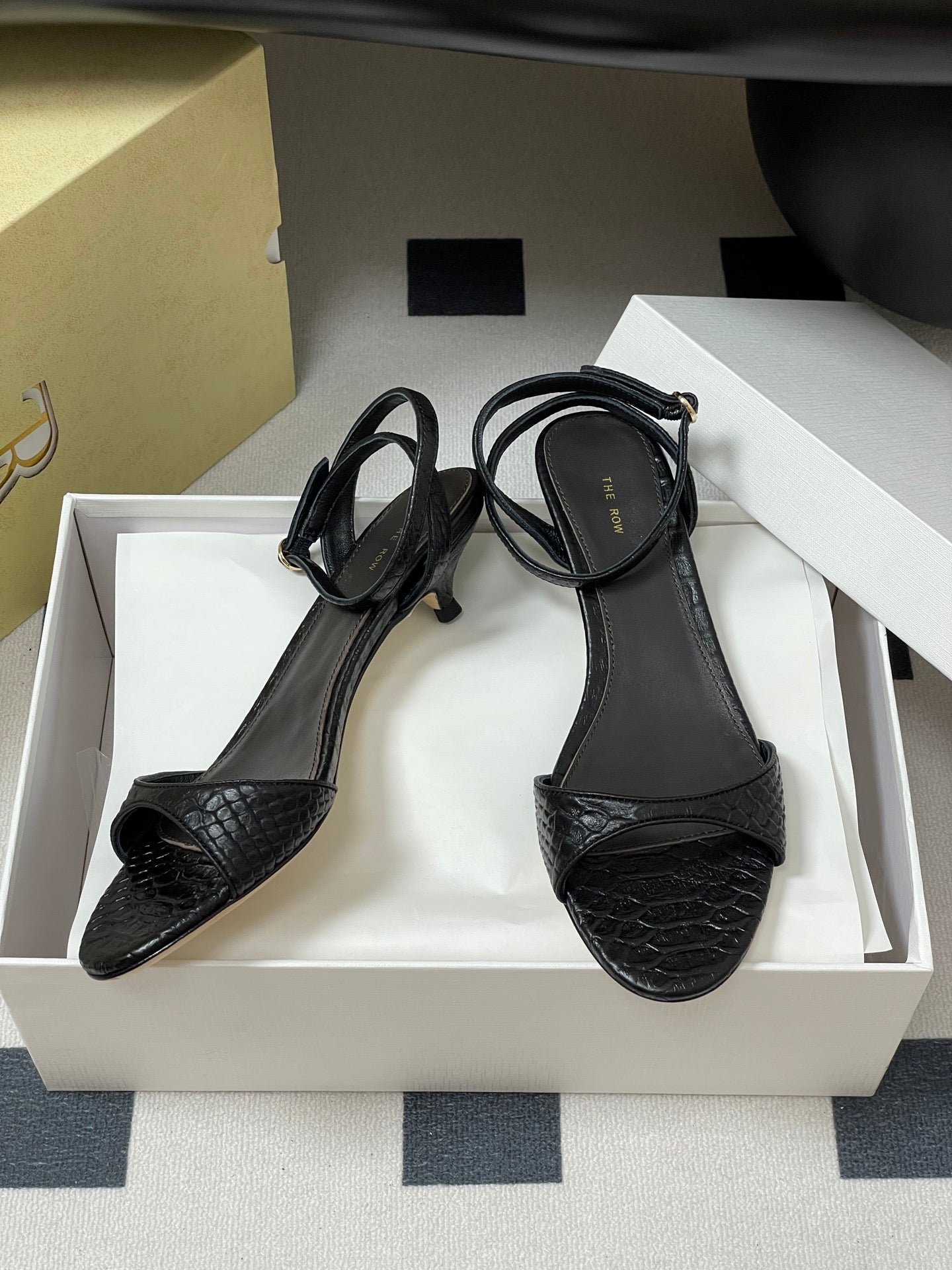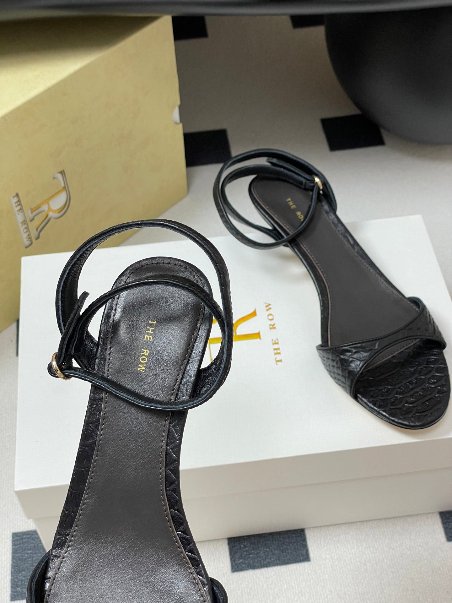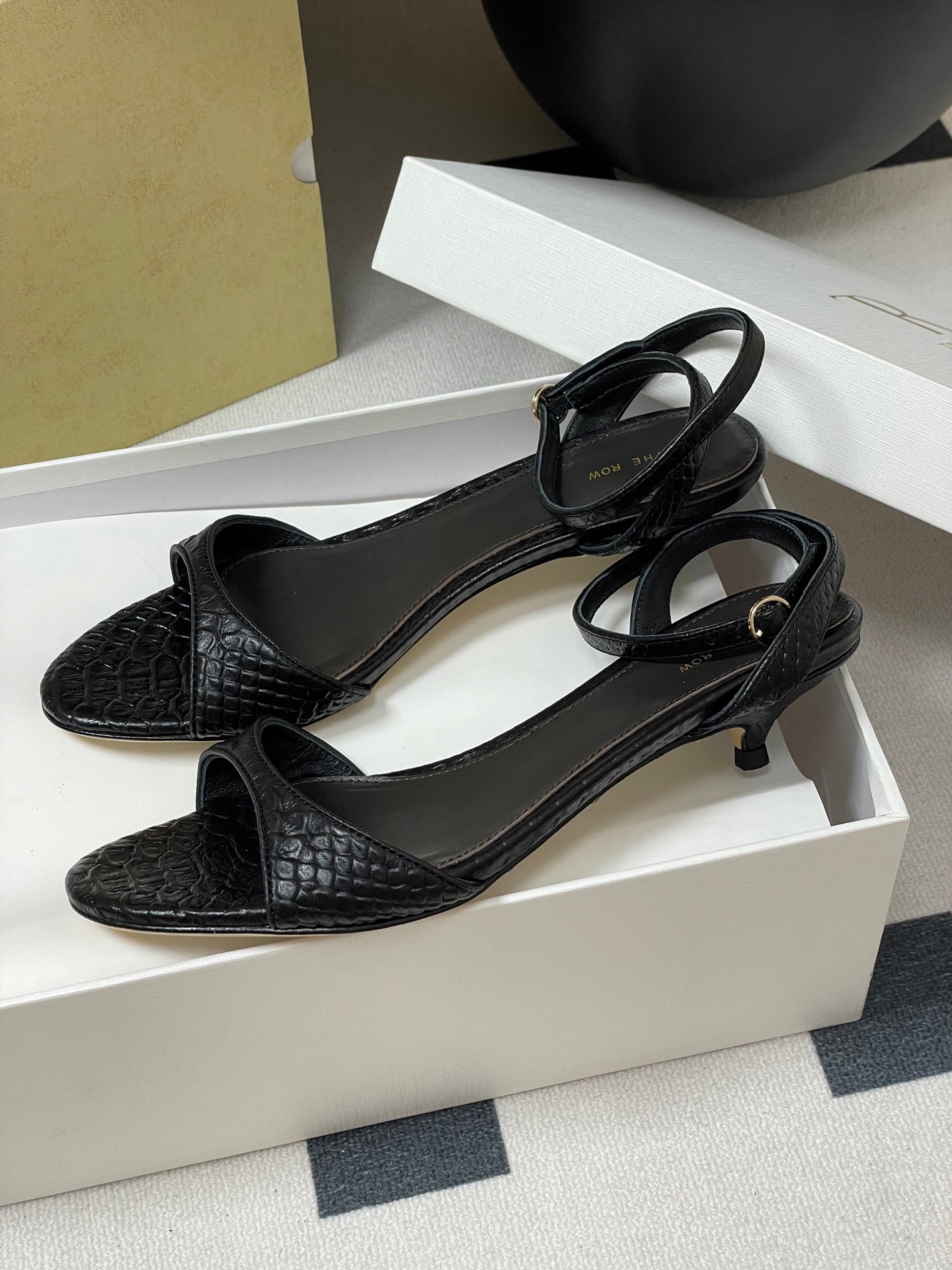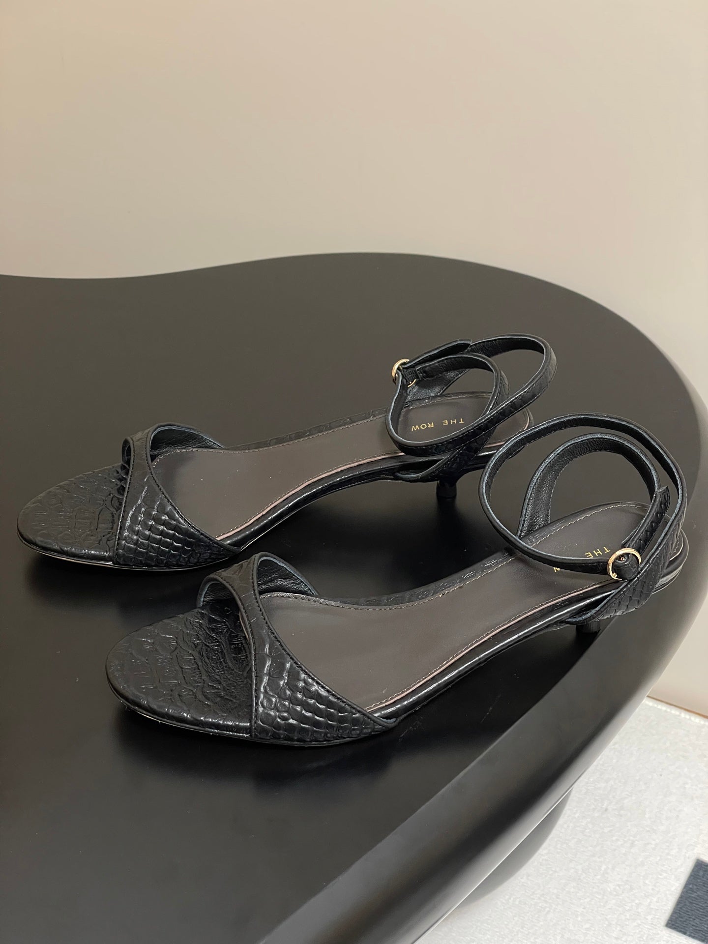 The Row 25S Strap High Heel Sandals 35mm Black Snake Pattern Cowhide 286197