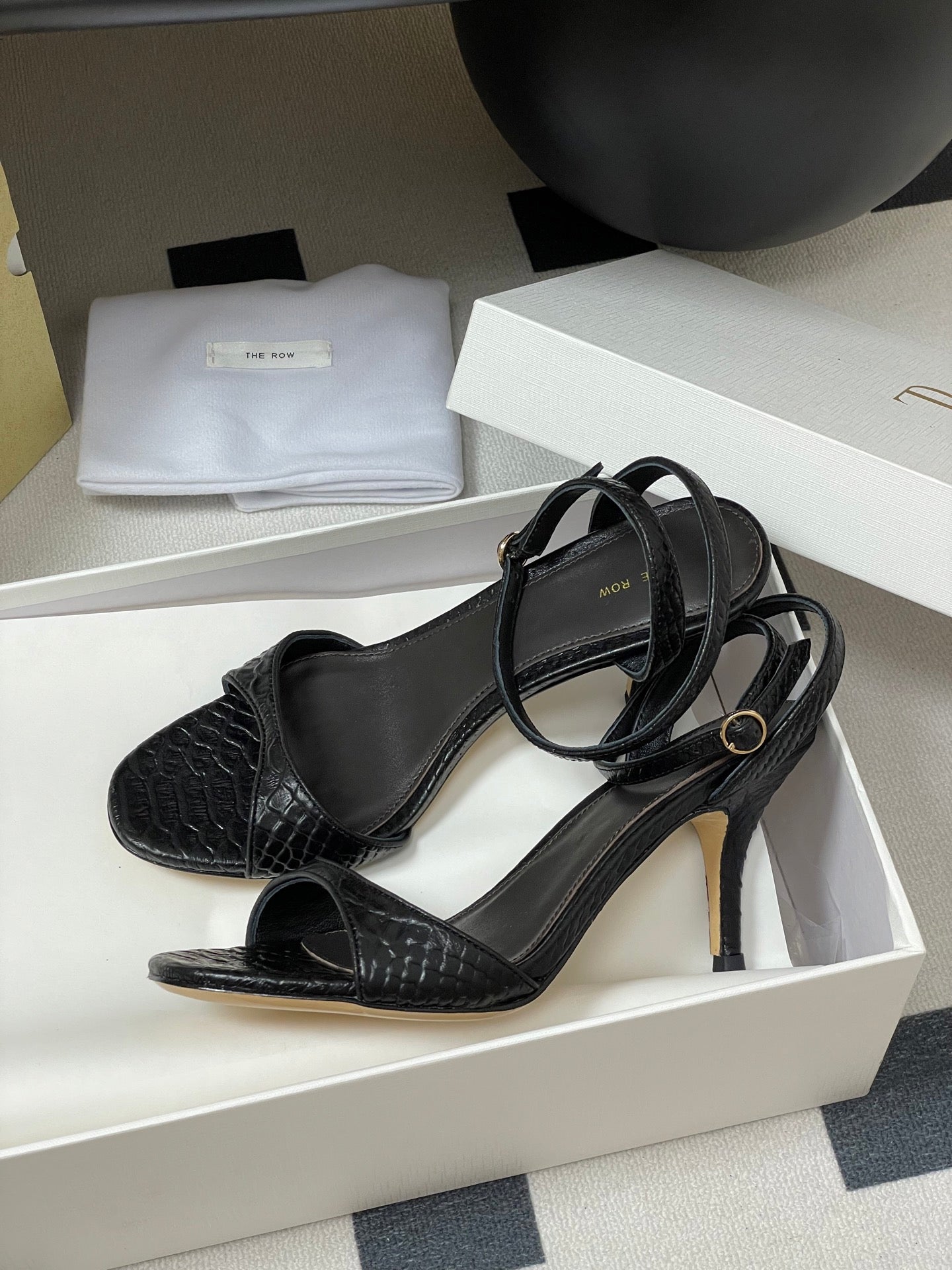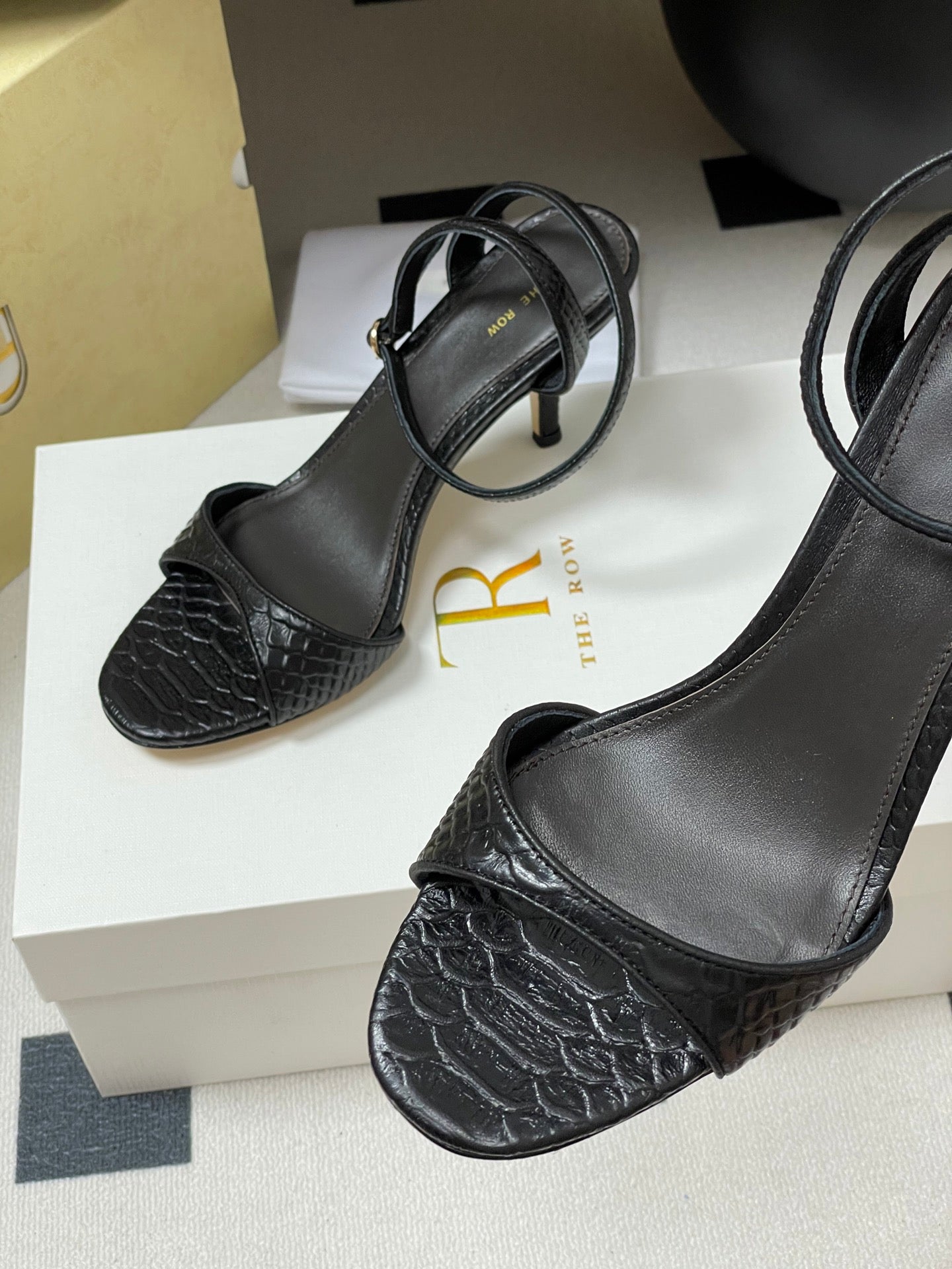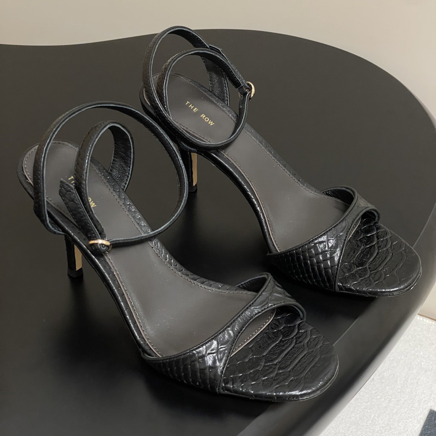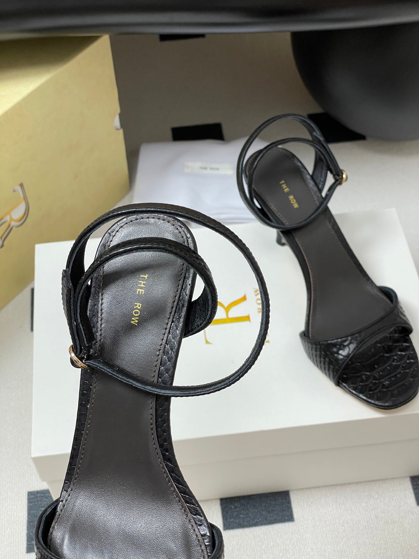 The Row 25S Strap High Heel Sandals 85mm Black Snake Pattern Cowhide 286189