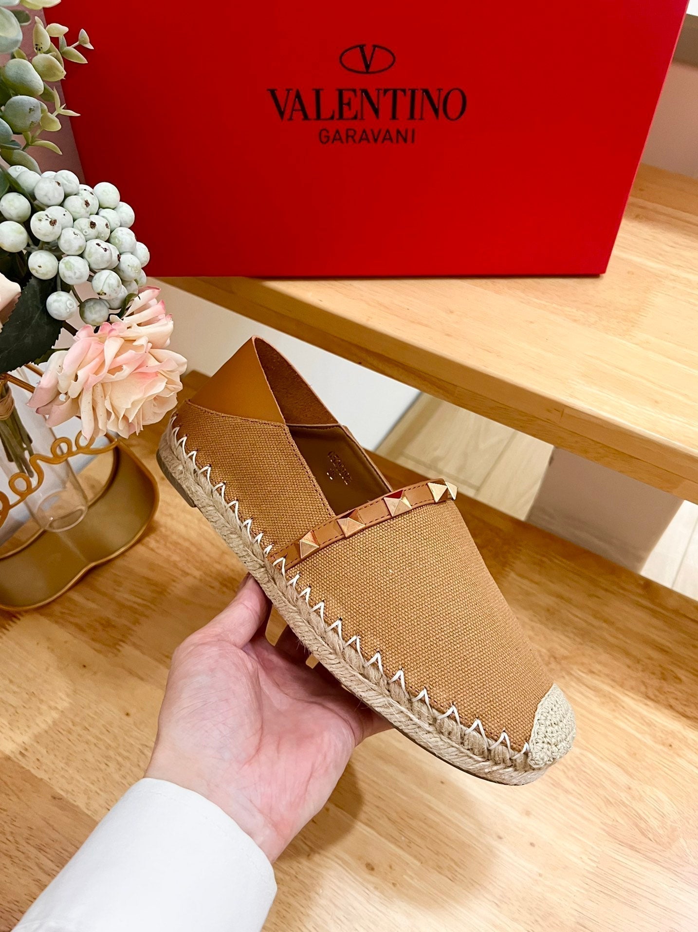 ROCKSTUD CIDER BROWN CANVAS ESPADRILLES
