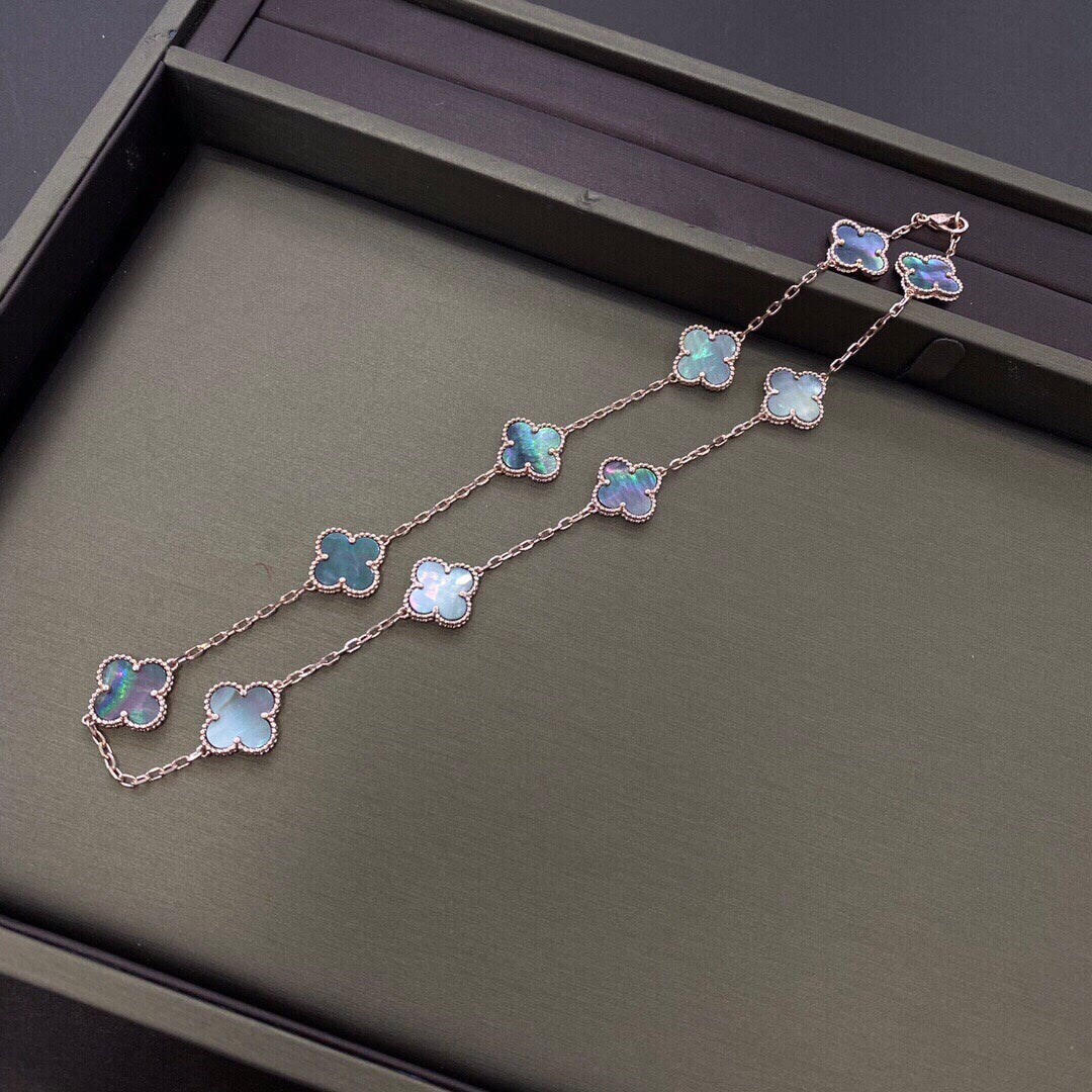 CLOVER 10 MOTIFS DARK MOP NECKLACE