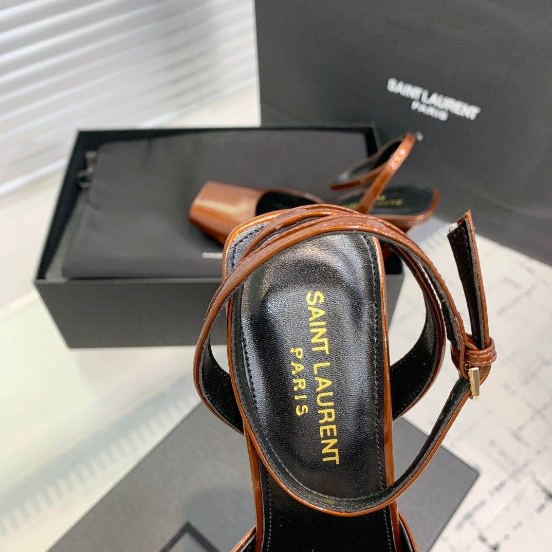 SL FISH MOUTH SANDAL PUMP OCHRE POLISHED CALFSKIN