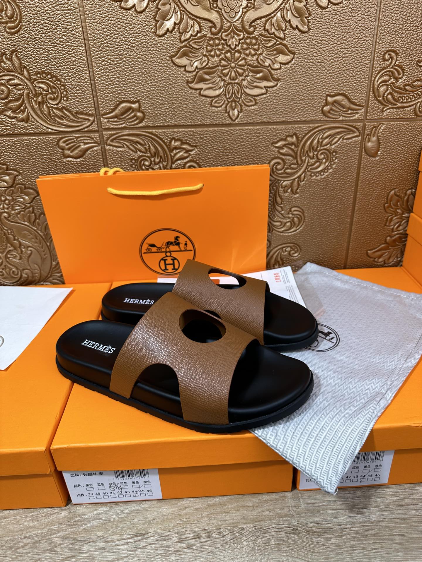 HM CIRCLE CUT SANDAL CARAMEL CALFSKIN
