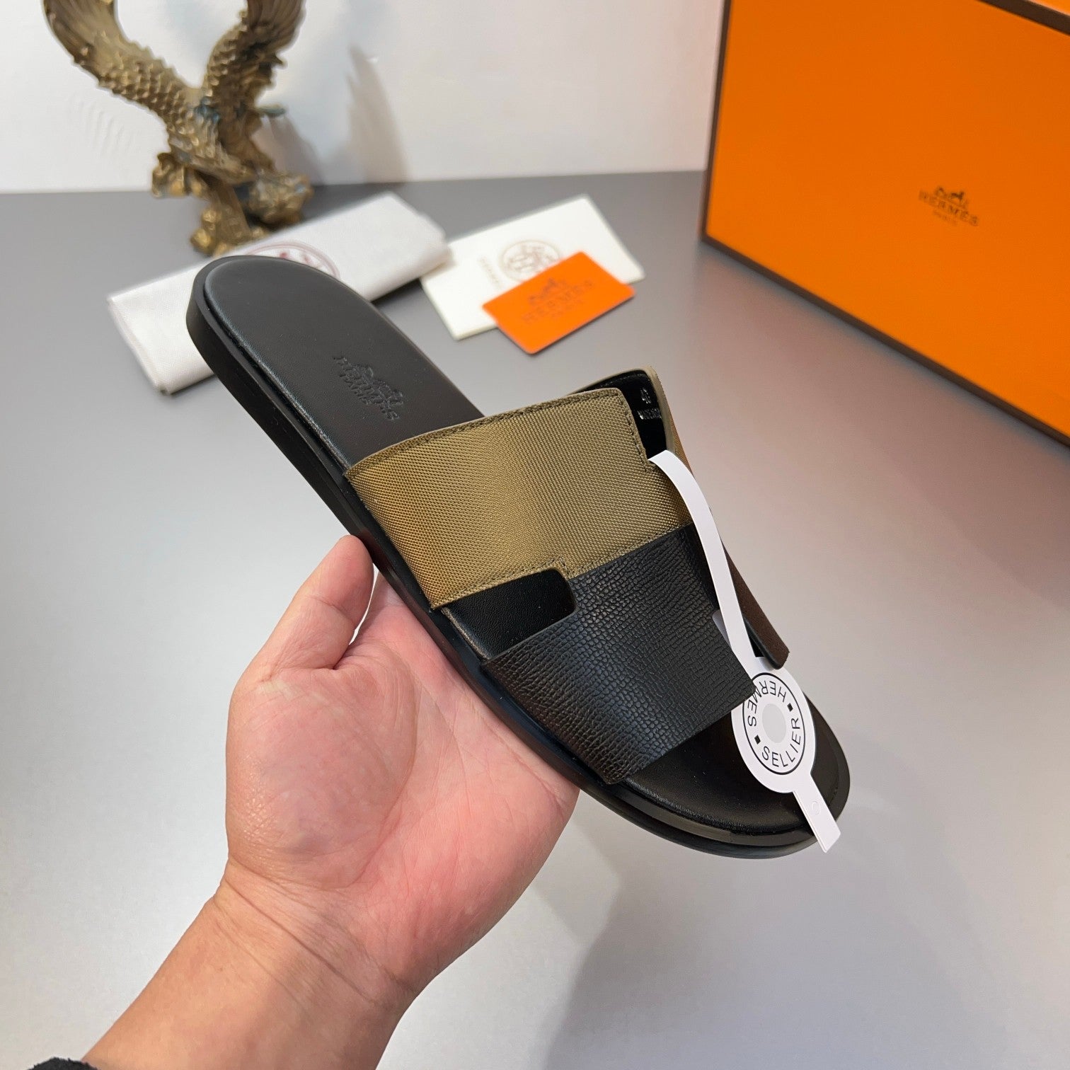 HM Oran Slippers in Gold and Black Cowhide 735631