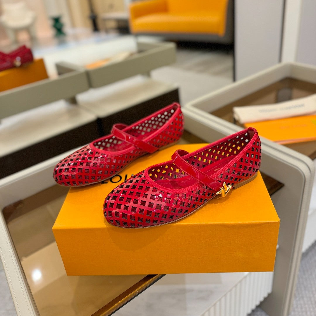 Romy Flat Ballerina Red Perforated Patent Calf Leather 241232