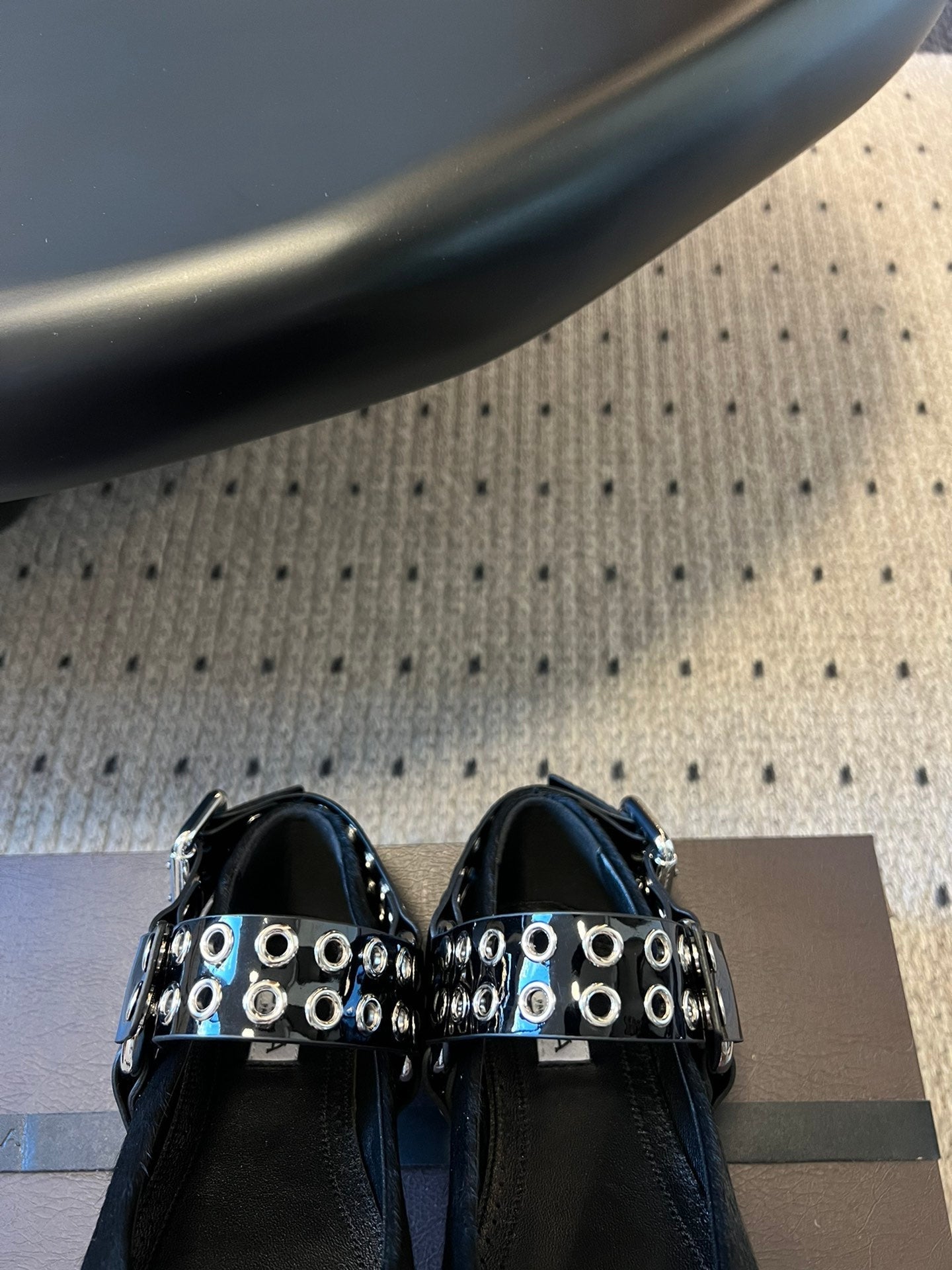 Alaia 25 Biker Ballet Flats Black Horsehair Sheepskin 303729