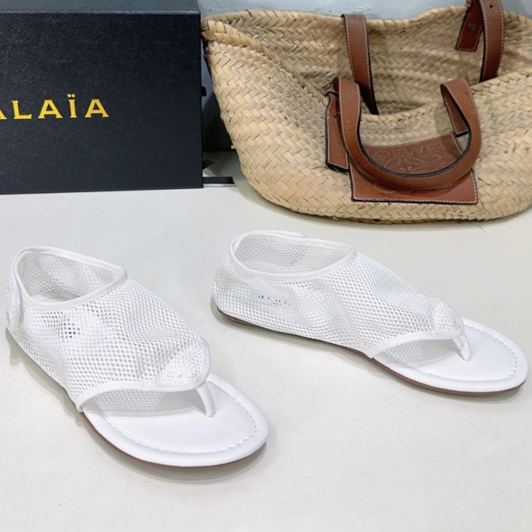 Alaia 25 Thong Sandals White Fishnet Sheepskin 315964