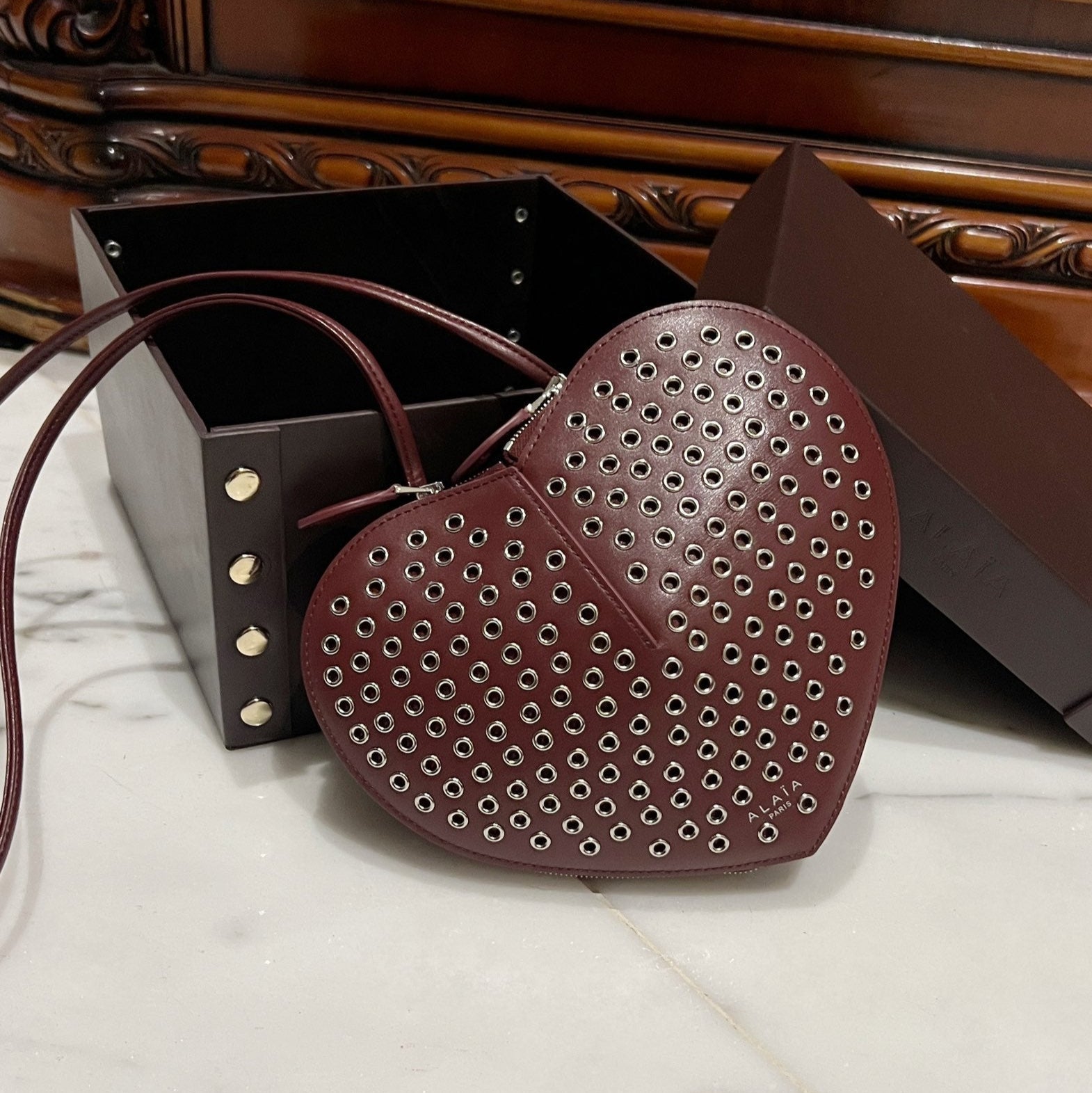 LE COEUR BAG 21 IN BURGUNDY RED STUDDED CALFSKIN