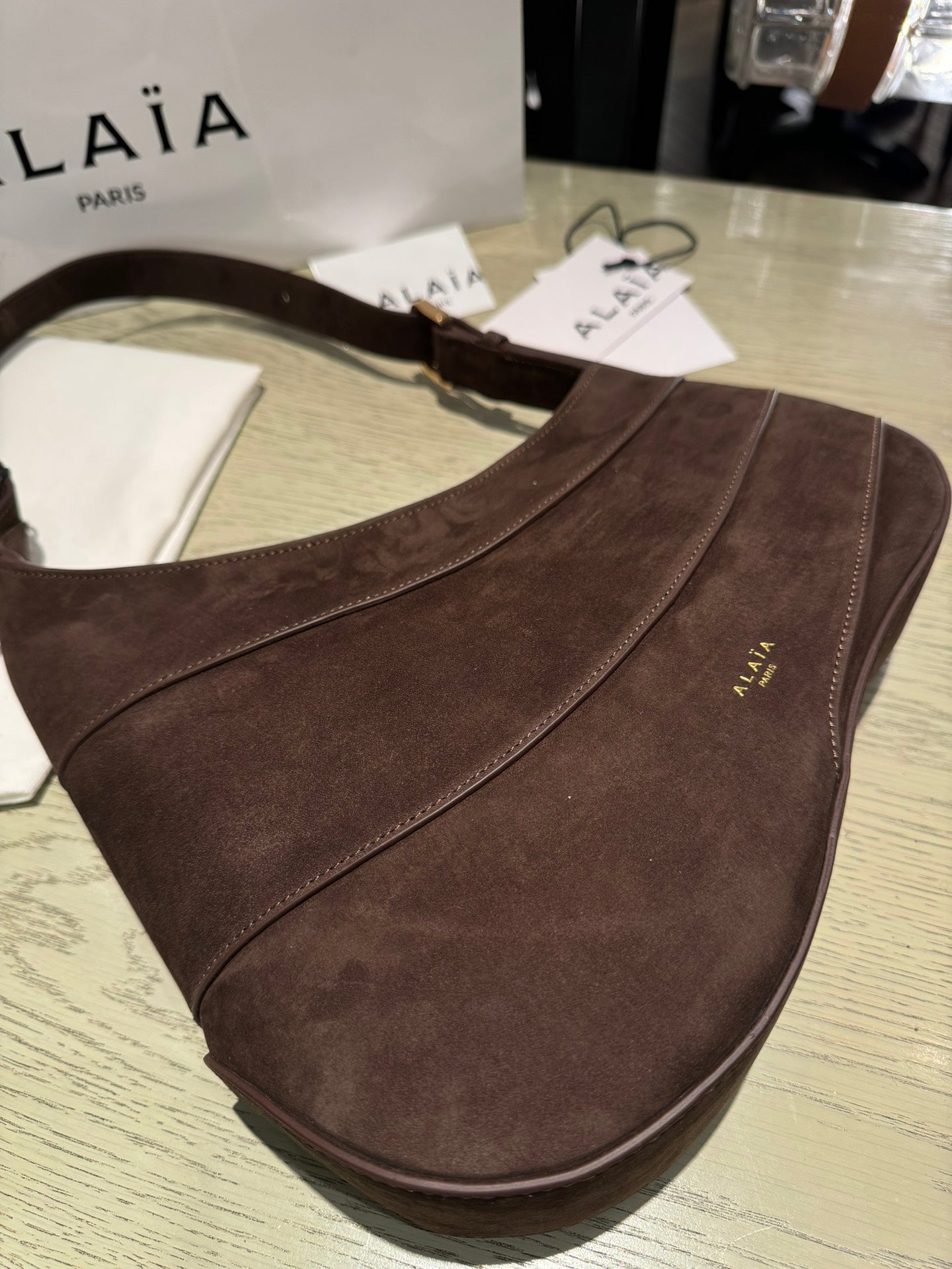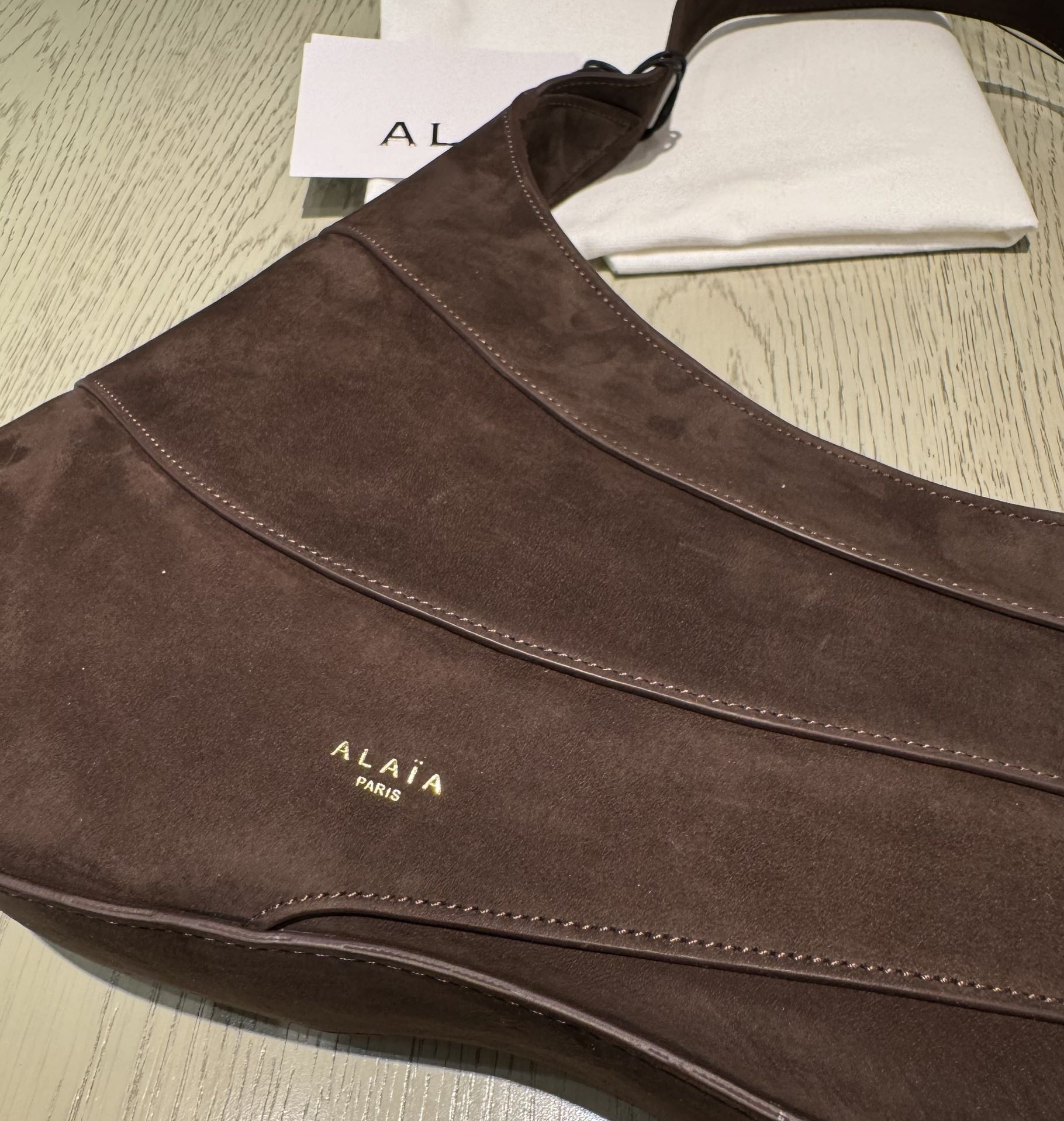 WAVE HOBO BAG 29 IN CHOCOLATE SUEDE