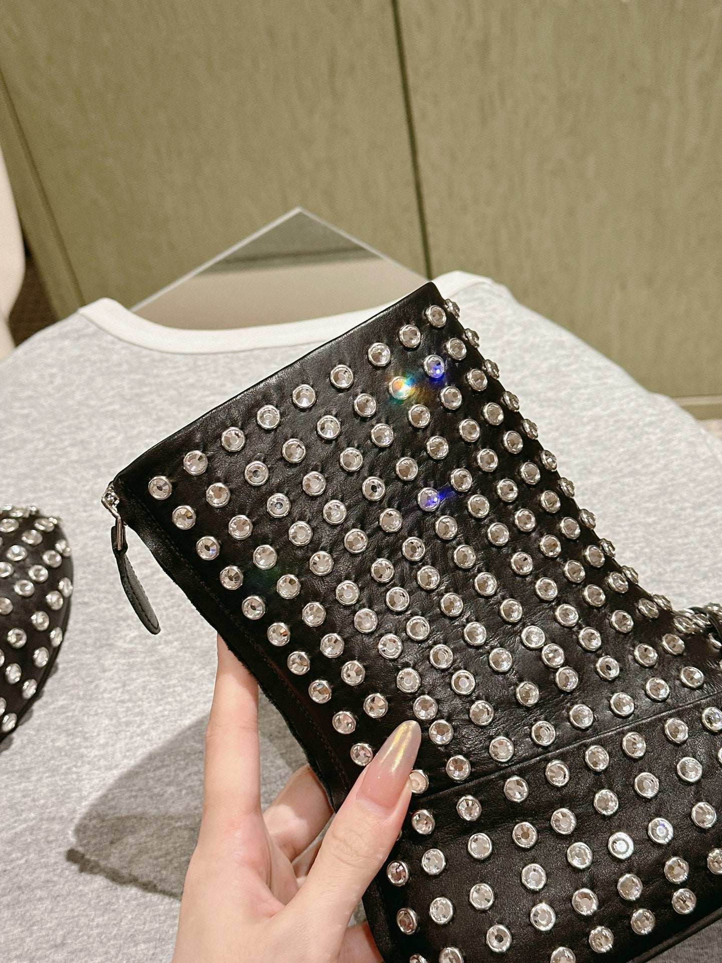 ALAIA SHORT BOOTS IN BLACK LAMBSKIN ATTACH RHINSTONES