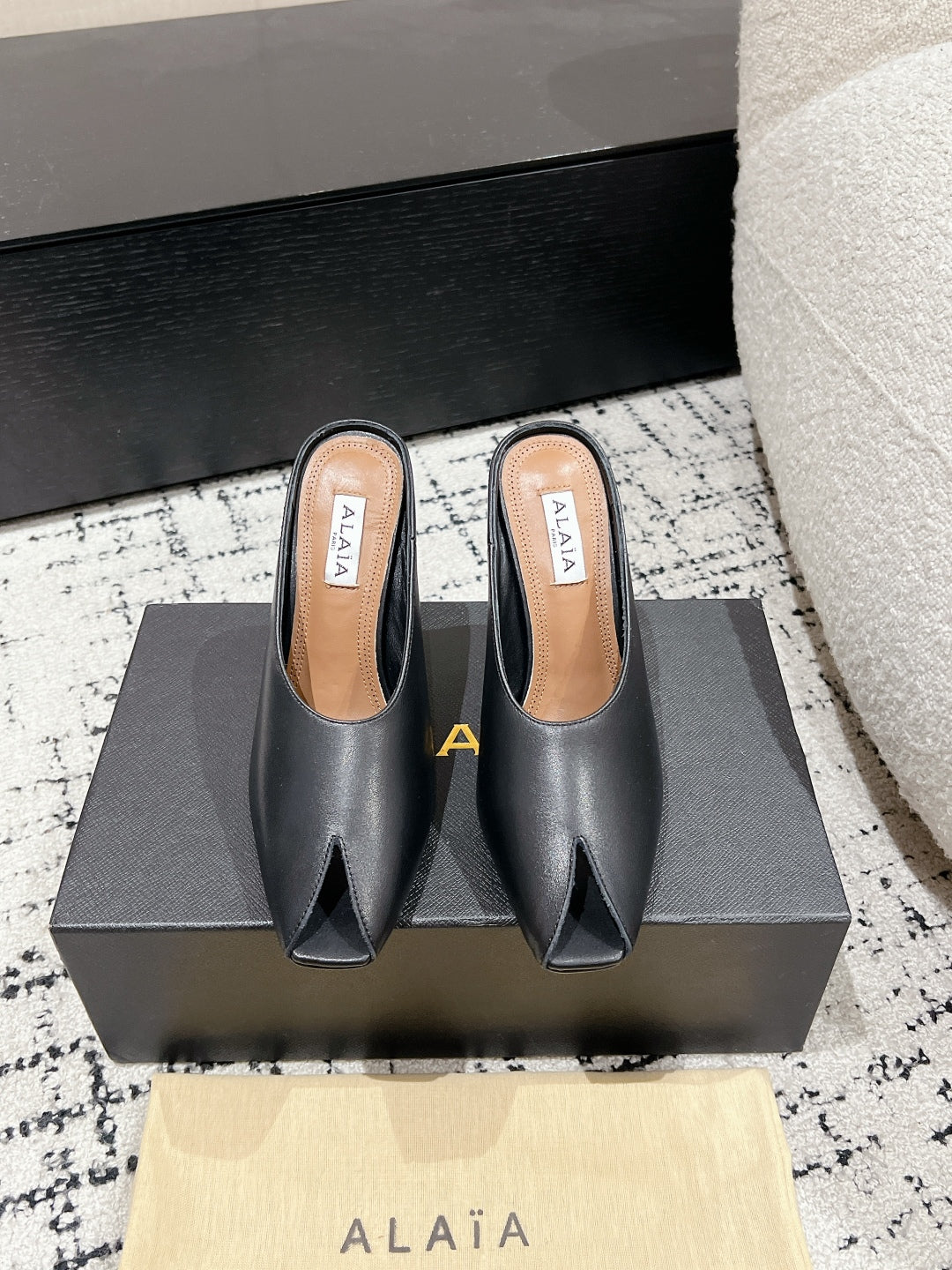Alaia 25 Spike High Heel Mules Black Lampskin 293181