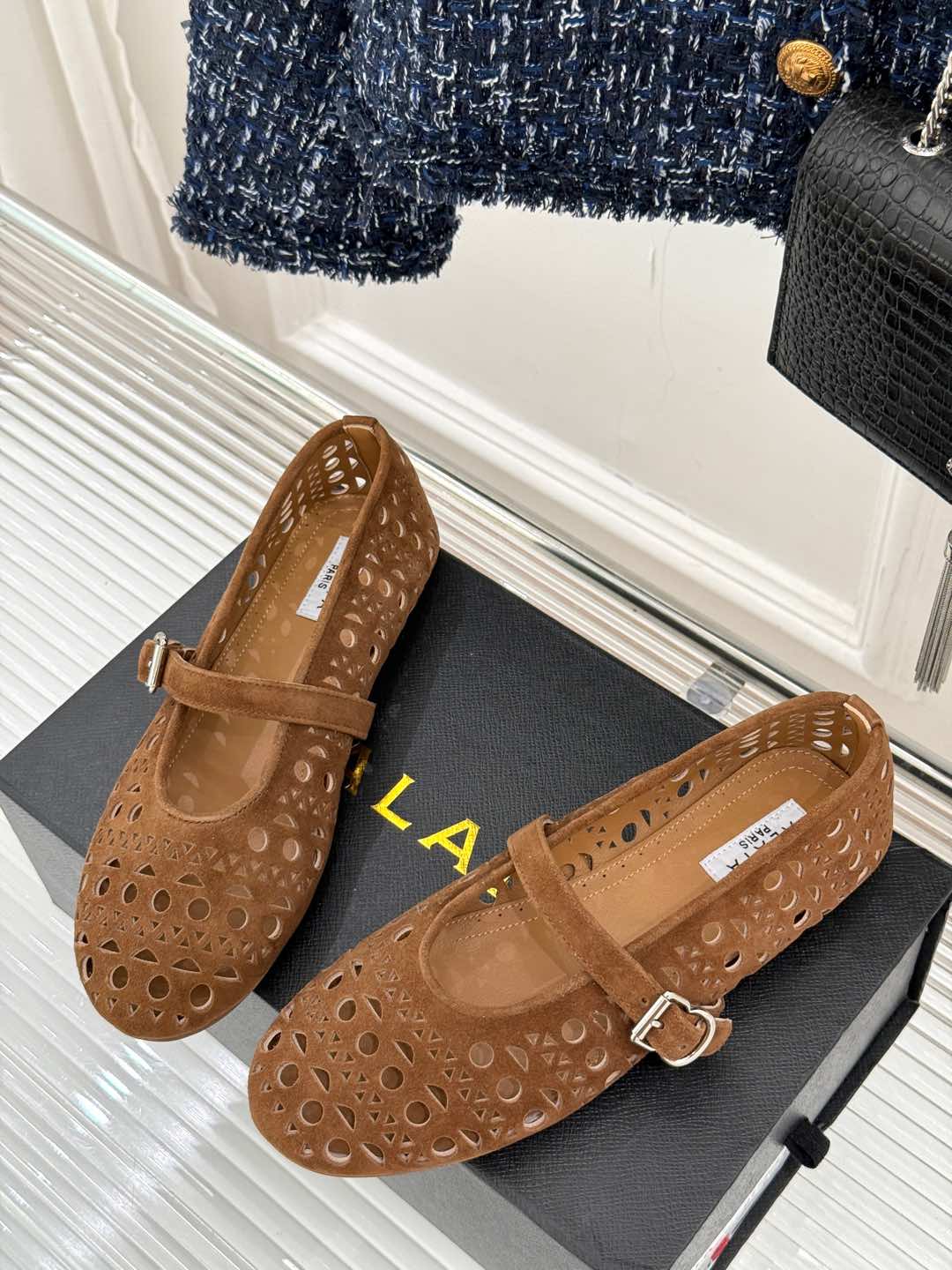 Alaia Women's Ballet Flat Brown Beige Suede 293222