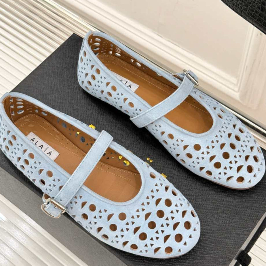 Alaia Women's Ballet Flat Light Blue Suede 293224