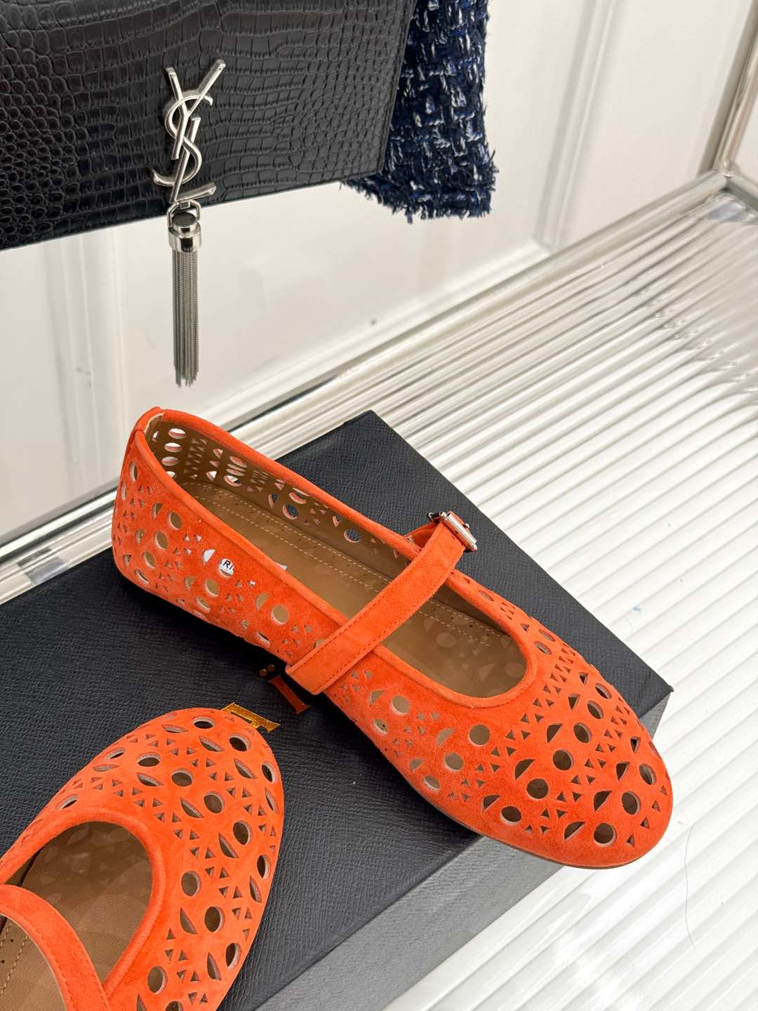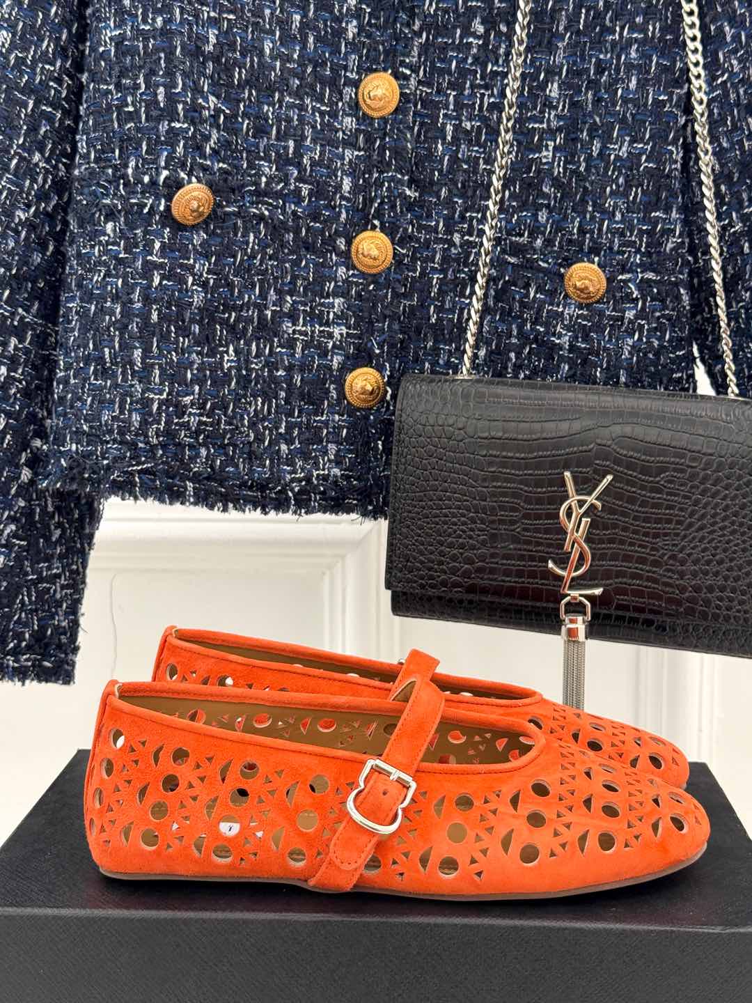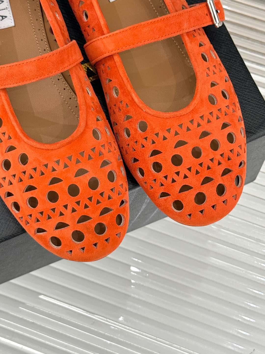 Alaia Women's Ballet Flat Orange Suede 293228
