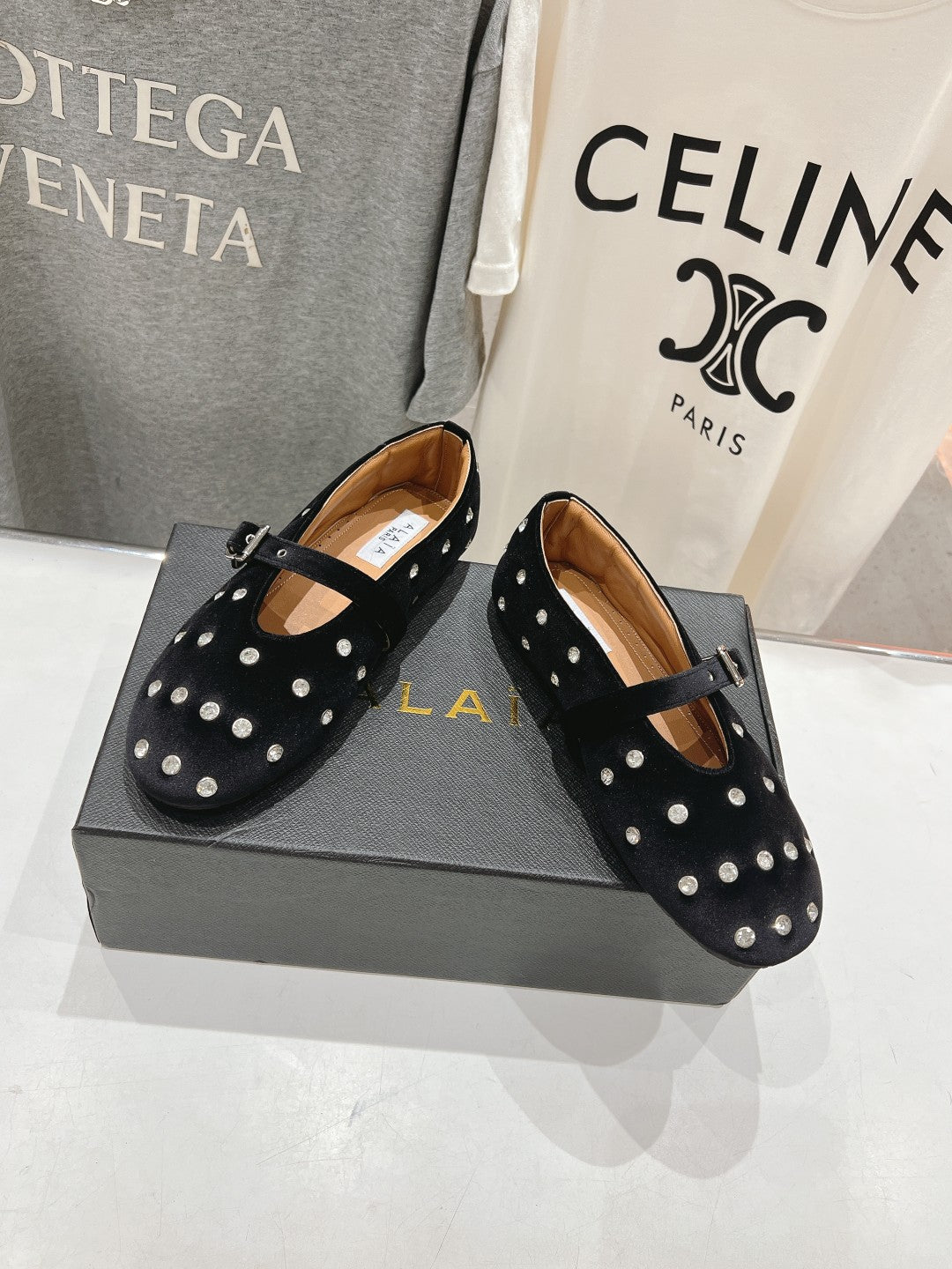 • Color: Black, Dark Beige • Material: Velvet With Rhinestones, Lambskin • High hell: 0,5CM • Size: 35 - 40