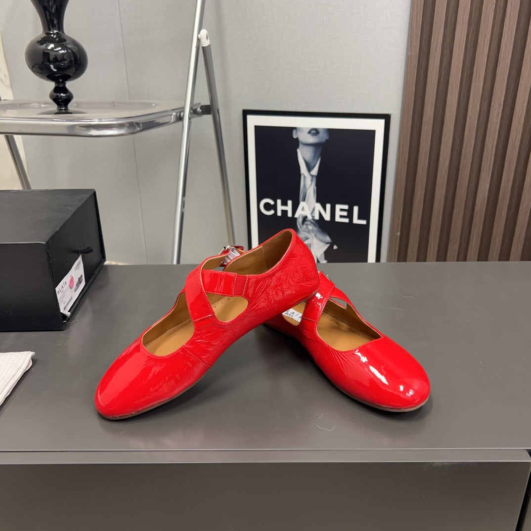 Alaila Criss Cross Ballet Flats In Red Glossy Calfskin 996033