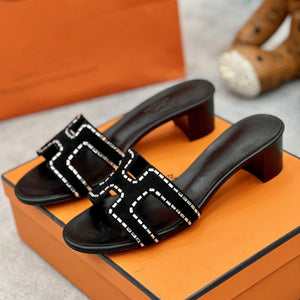 0RAN SANDAL BLACK LAMBSKIN ATTACH CRYSTALS