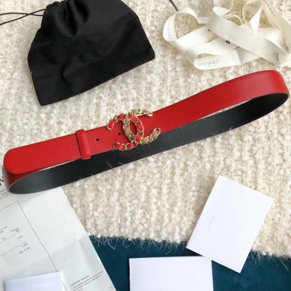 CC WOMEN'S BELT 3.0CM BUCKLE MULTICOLOR LEATHER RED
