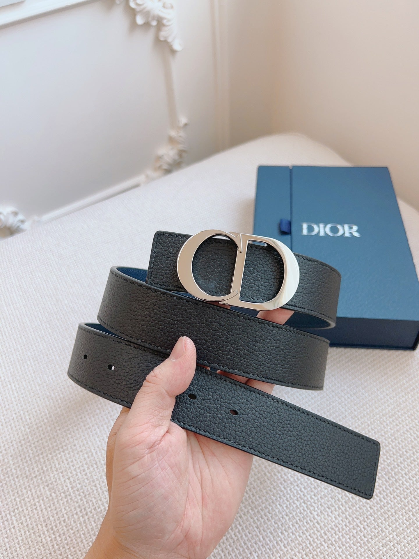 CD Belt 35mm Black Blue Leather Silver Buckle