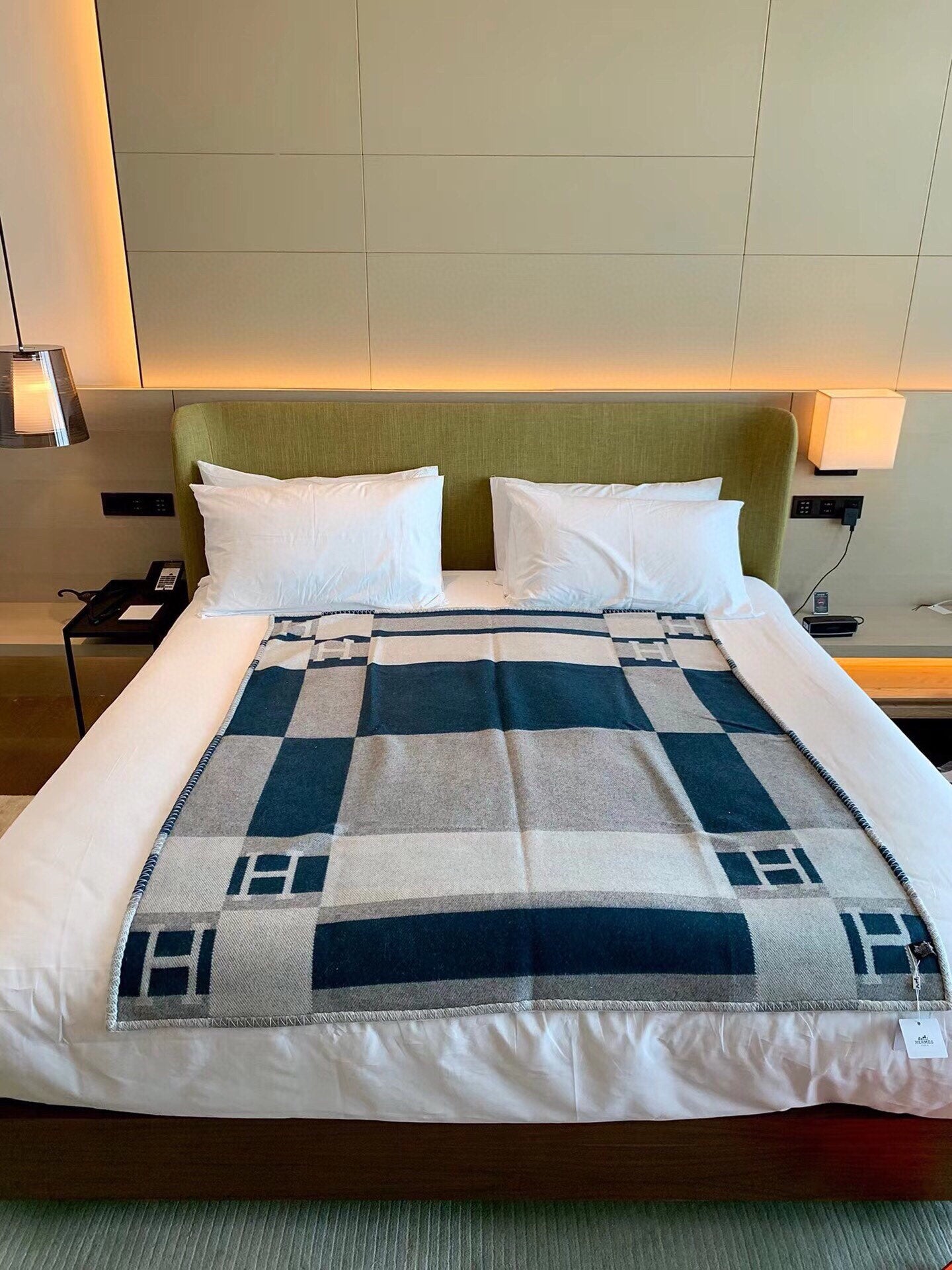 HM Avalon Throw Blanket Blue Grey Wool Cashmere