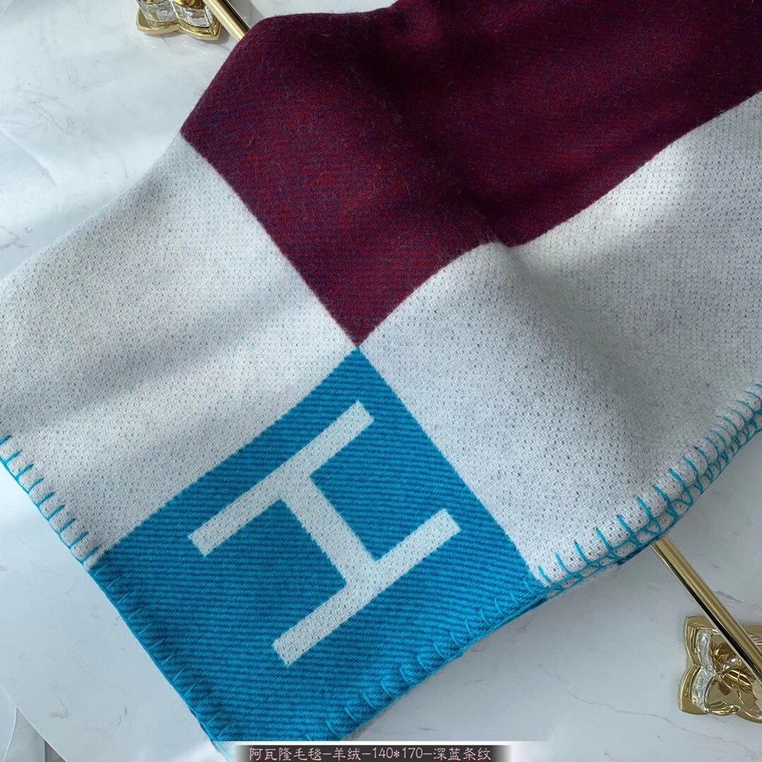 HM Avalon Throw Blanket Ecru Indigo Wool Cashmere