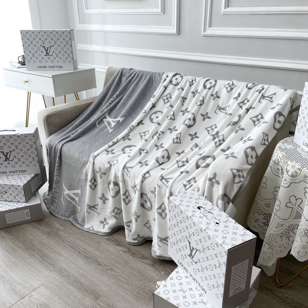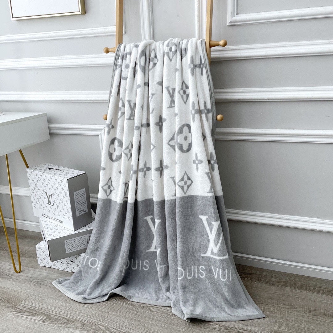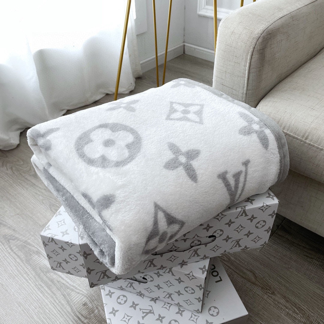 NEO MONOGRAM BLANKET IN WHITE MIX LIGHT GRAY MILK VELVET 273950