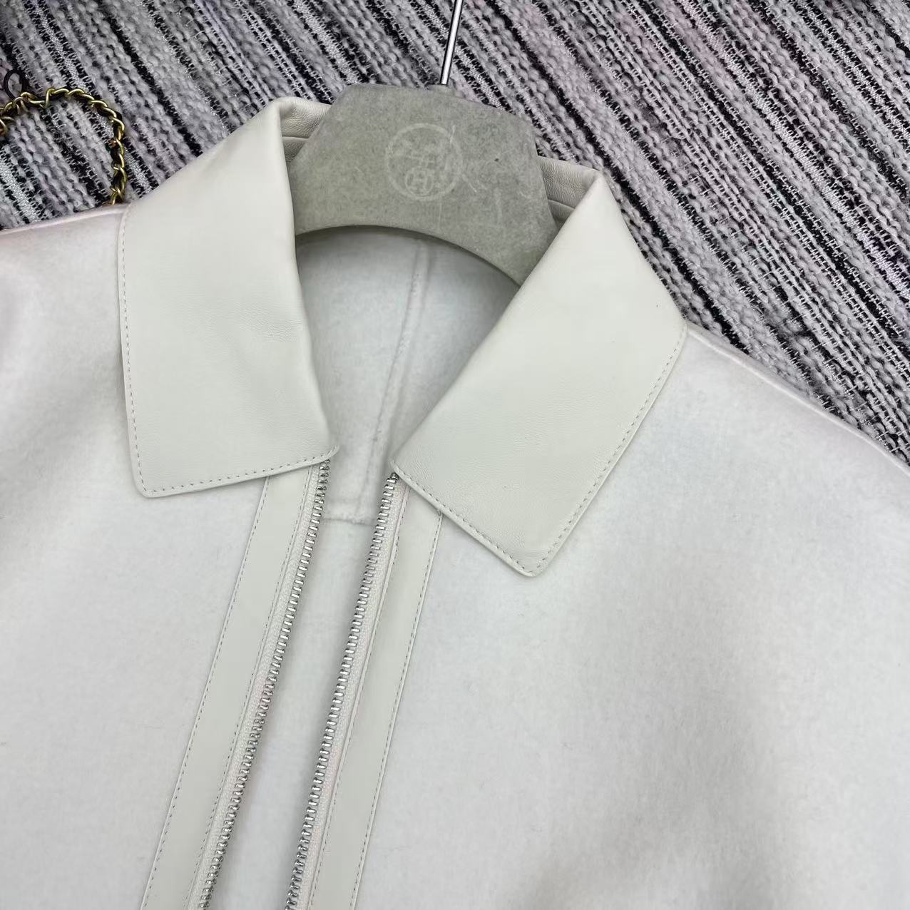 HM Patchwork Leather Lapel Double-faced White Cashmere Jacket