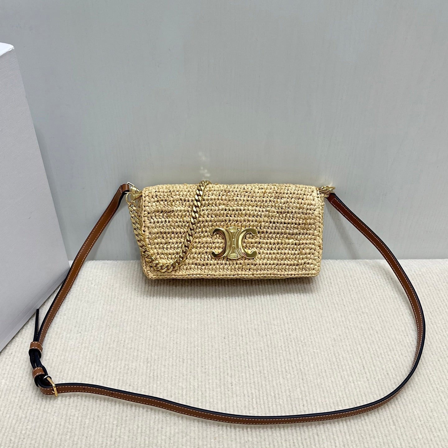 Celin Multi Pochette Pocket Raffia Woven Bag 126556