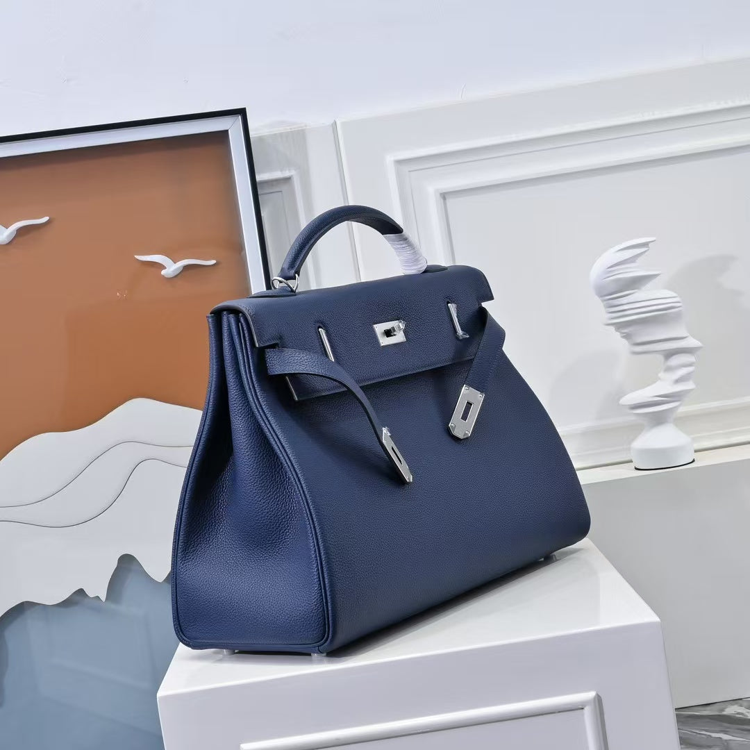 HM Kelly 42cm For Men Navy Blue Togo Leather Sliver Hardware (Need 25 days to produce)