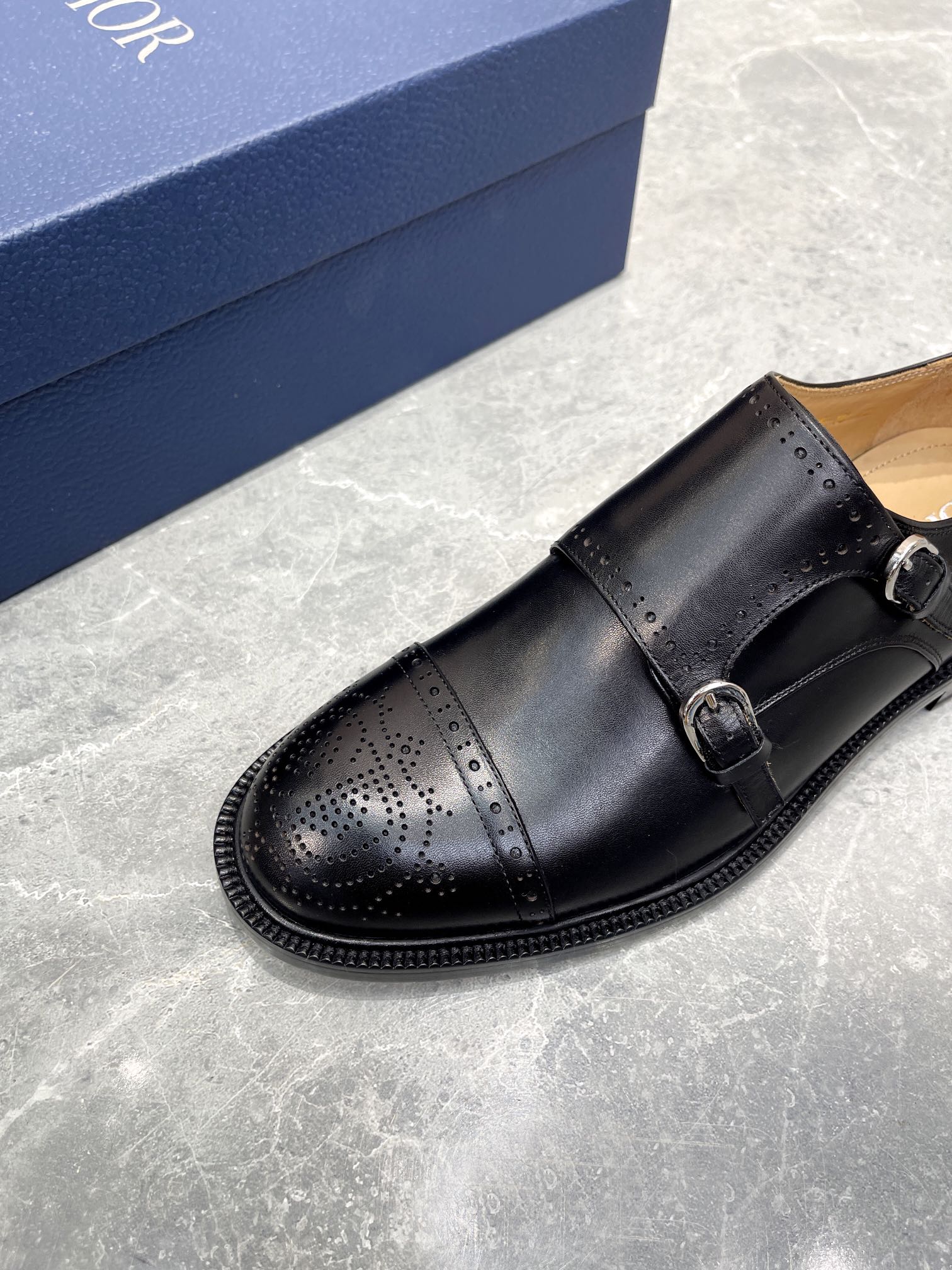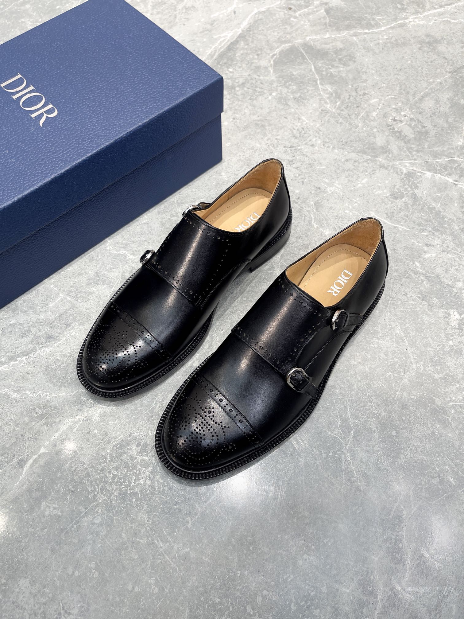 CD PATTERNED DOUBLE MONKSTRAP LOAFER BLACK CALFSKIN