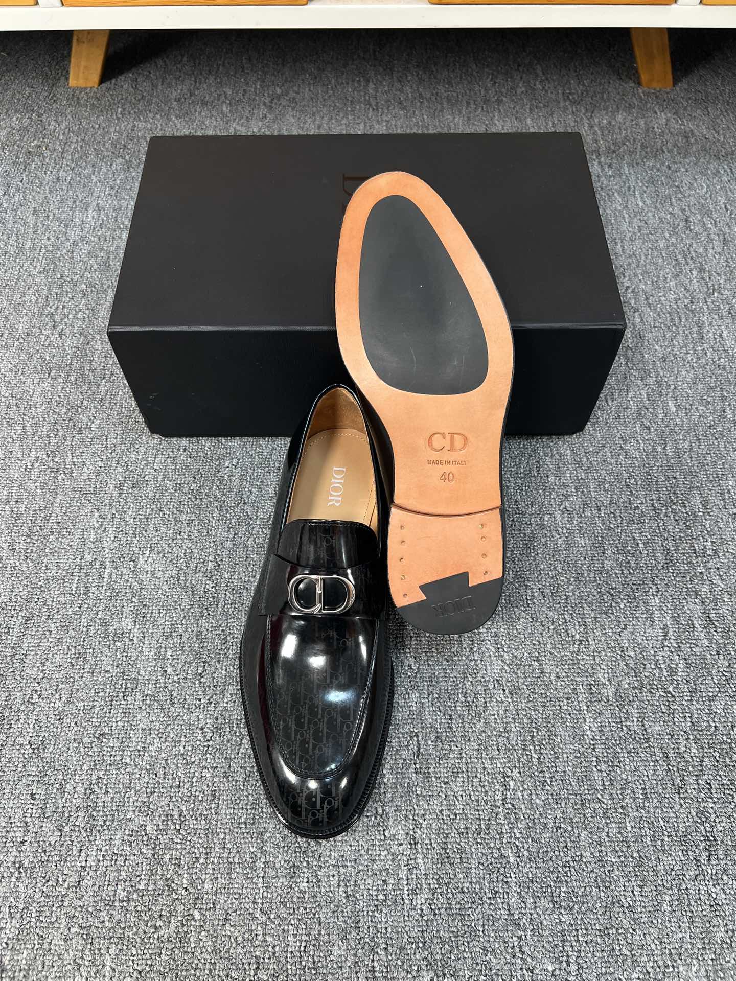 CD SYMBOL GRANVILLE LOAFER GLOSSY BLACK MONOGRAM LAMBSKIN
