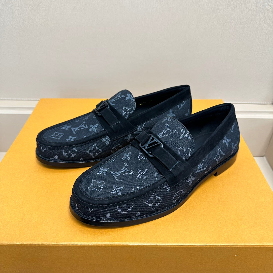 LV MAJOR LOAFERS IN BLACK MONOGRAM DENIM