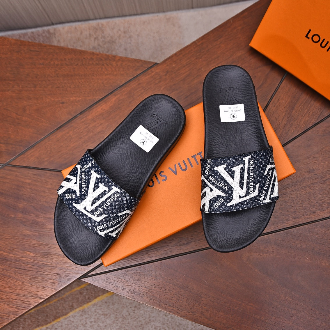 LV MULE BLACK WITH WHITE LOGO MONOGRAM CALFSKIN