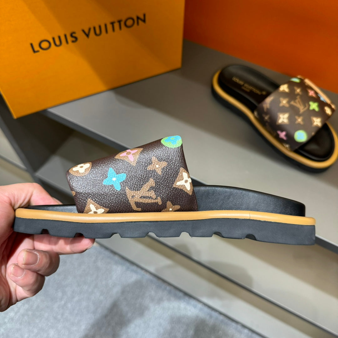 LV VELCRO SLIPPERS IN CHOCOLATE BROWN MONOGRAM CALFSKIN