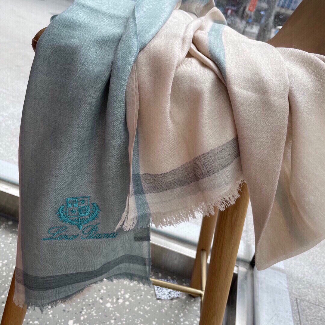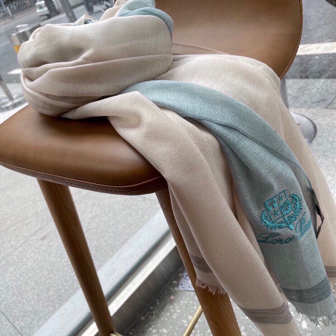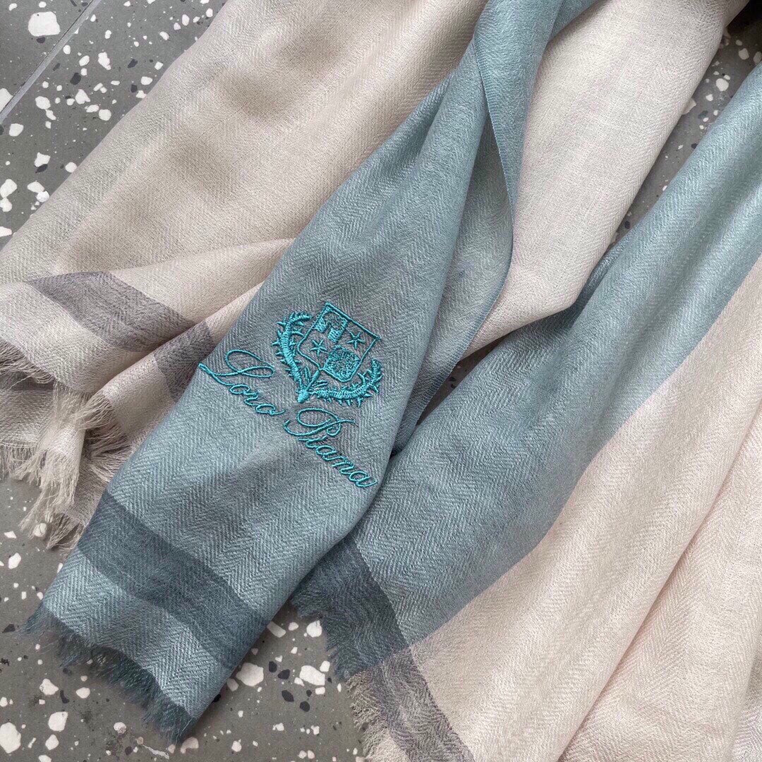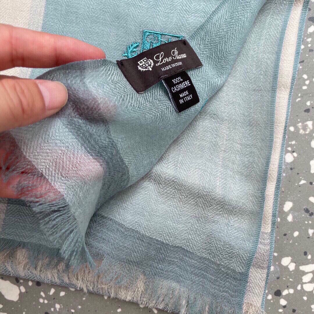 LP Quadrata Rainbow Scarf 200 CM In Beige Mix Turquoise Cashmere Silk 670020