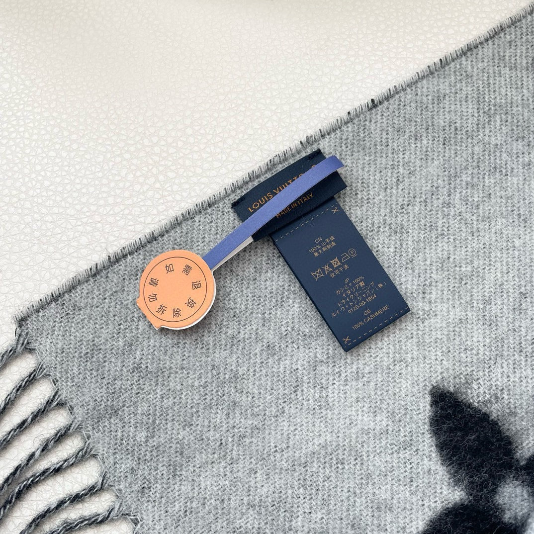 MONOGRAM FLOWERS SCARF 170 CM IN BLACK CASHMERE 390975