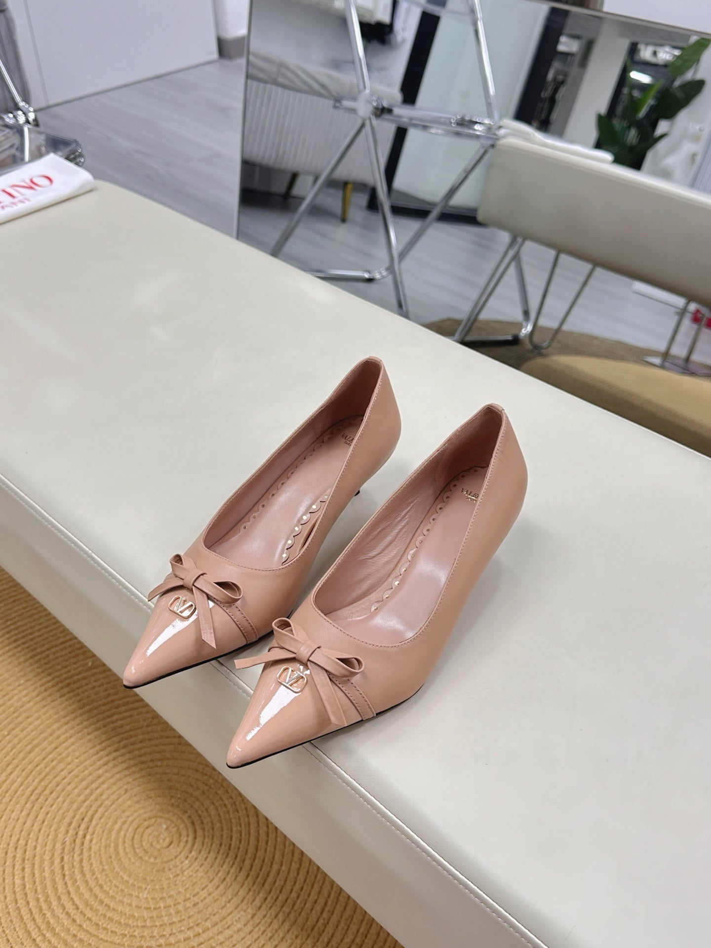 Bepointy Pump Bow In Rose Cannelle Cowhide And Patent Leather Pale Pink Sheepskin Linning 304258
