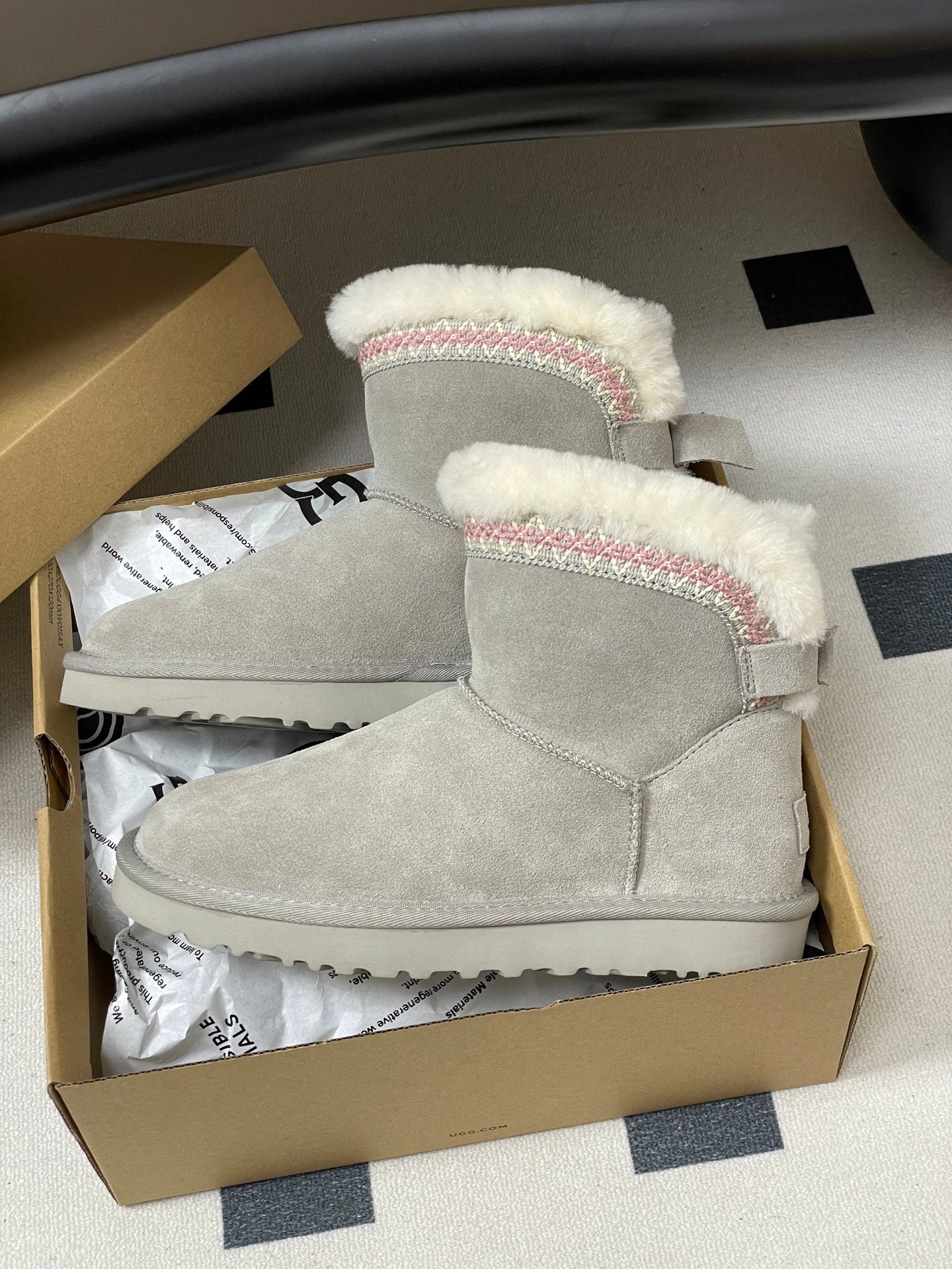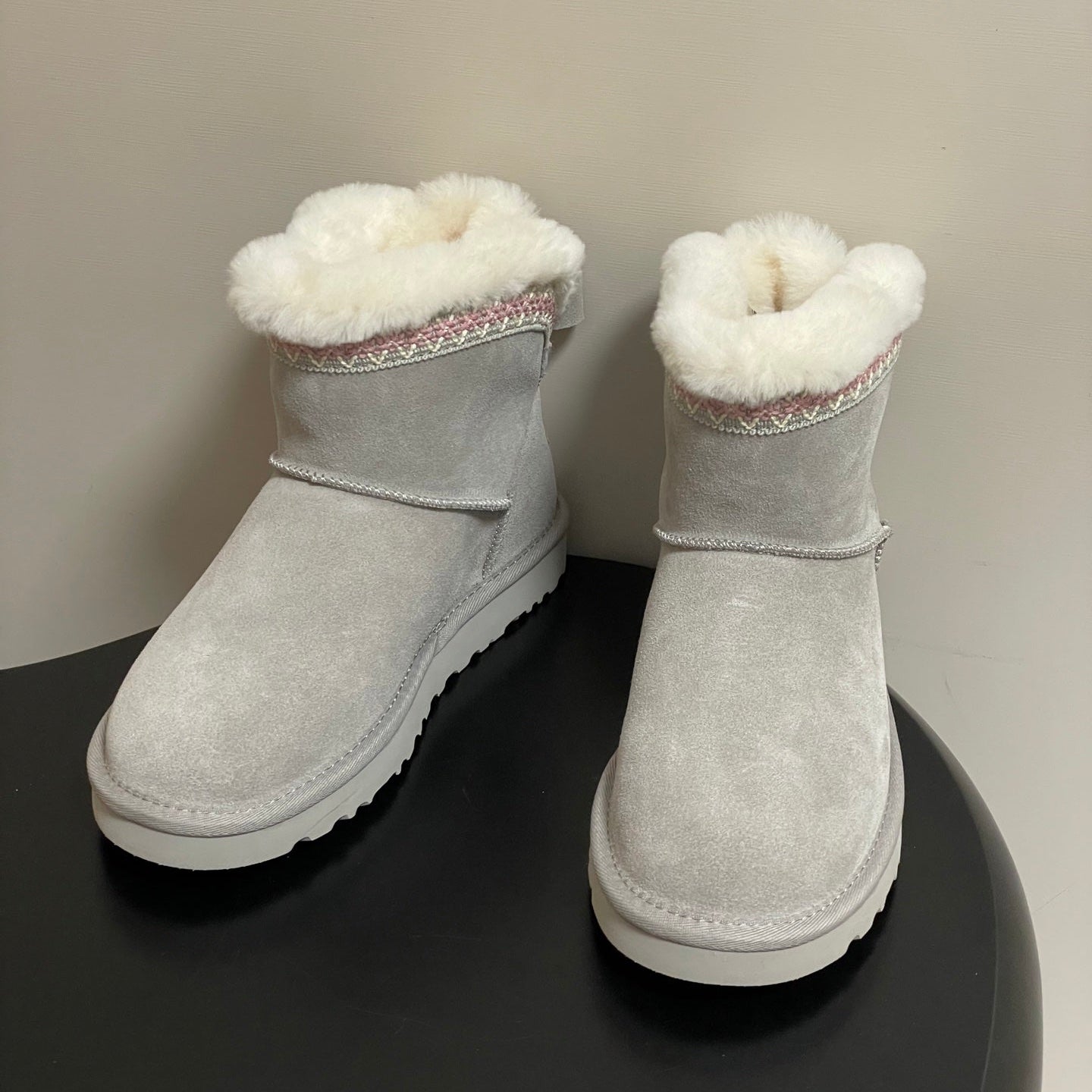 UGG Classic Mini Taslyn Boot Grey White Wool Suede 522215