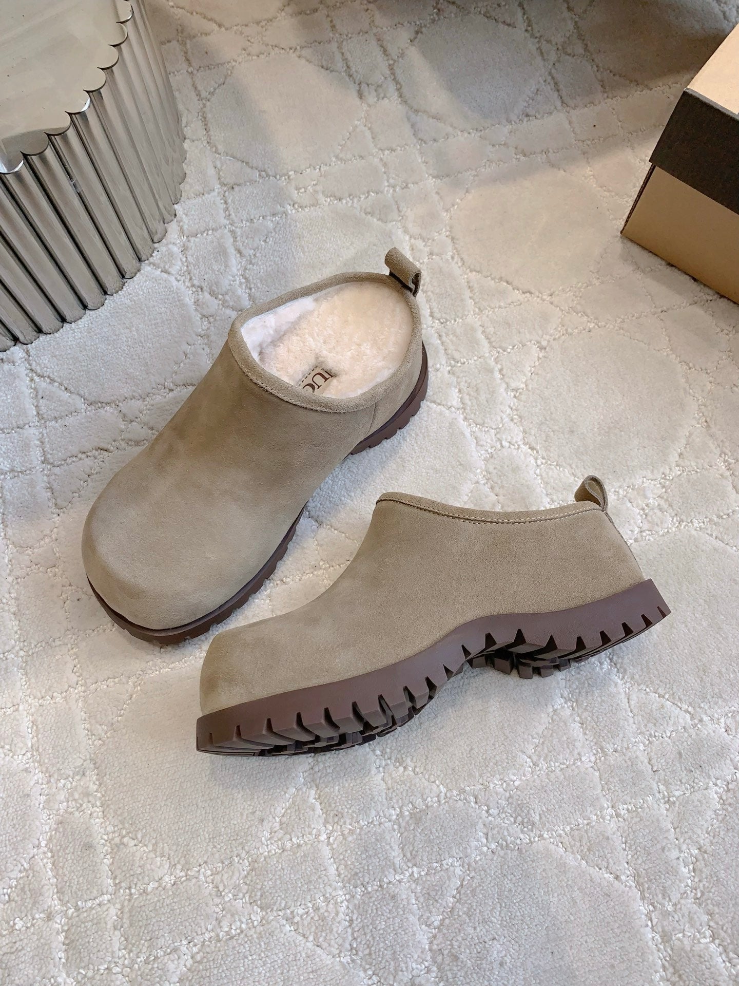 UGG Tazz Slippers Khaki Wool Suede Fleece Lining 516914