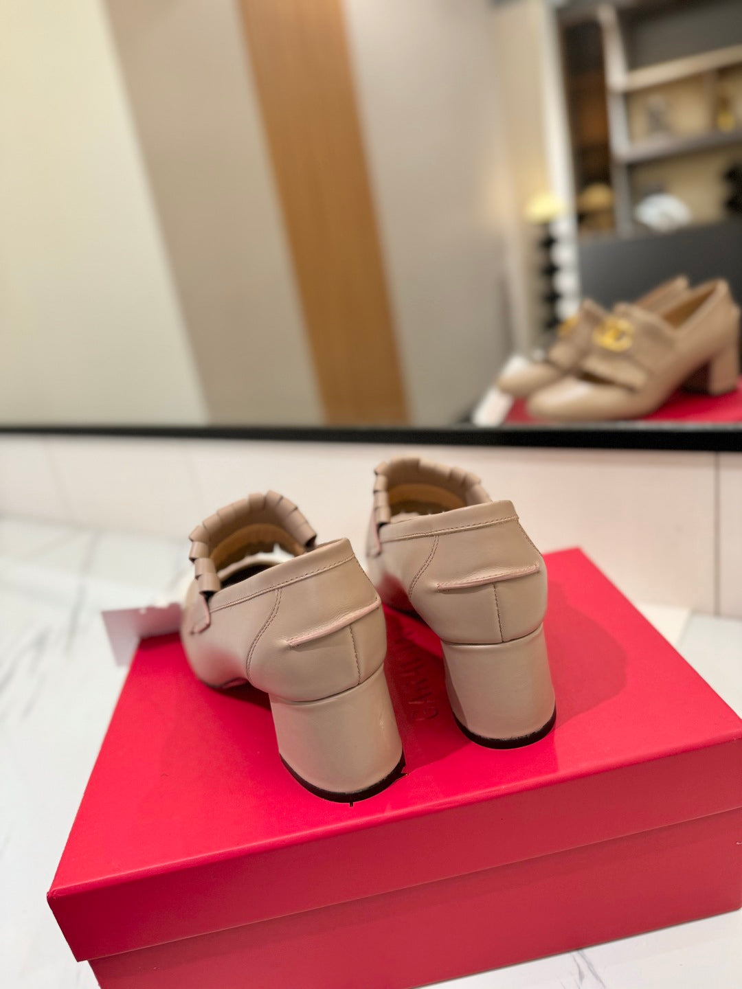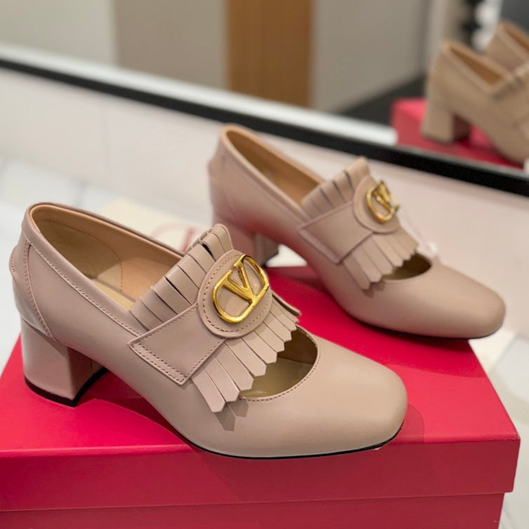 VT 2025 Signature Heeled Loafer Pure Beige Calf Leather 295070
