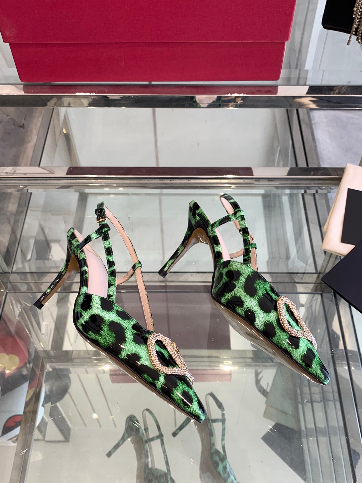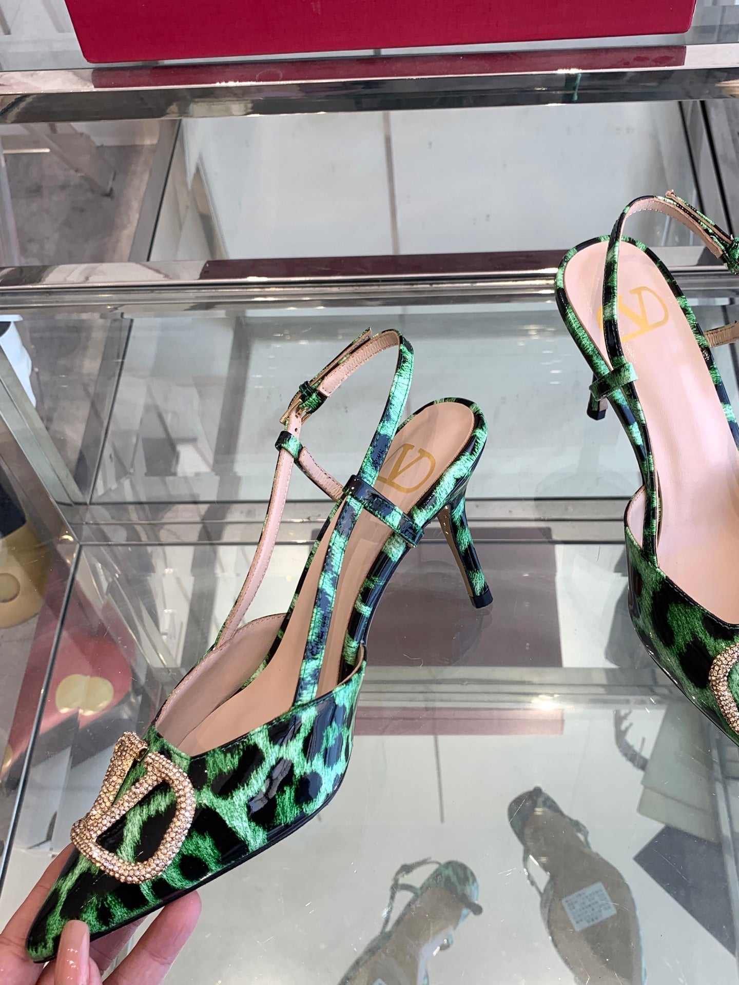 VT 25 High Heels Slingbacks Green Leopard Cowhide 292347