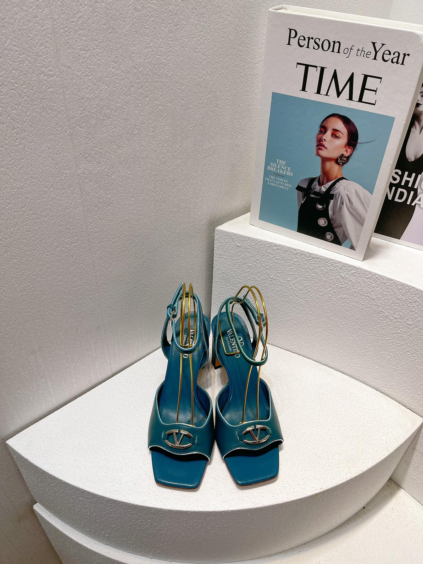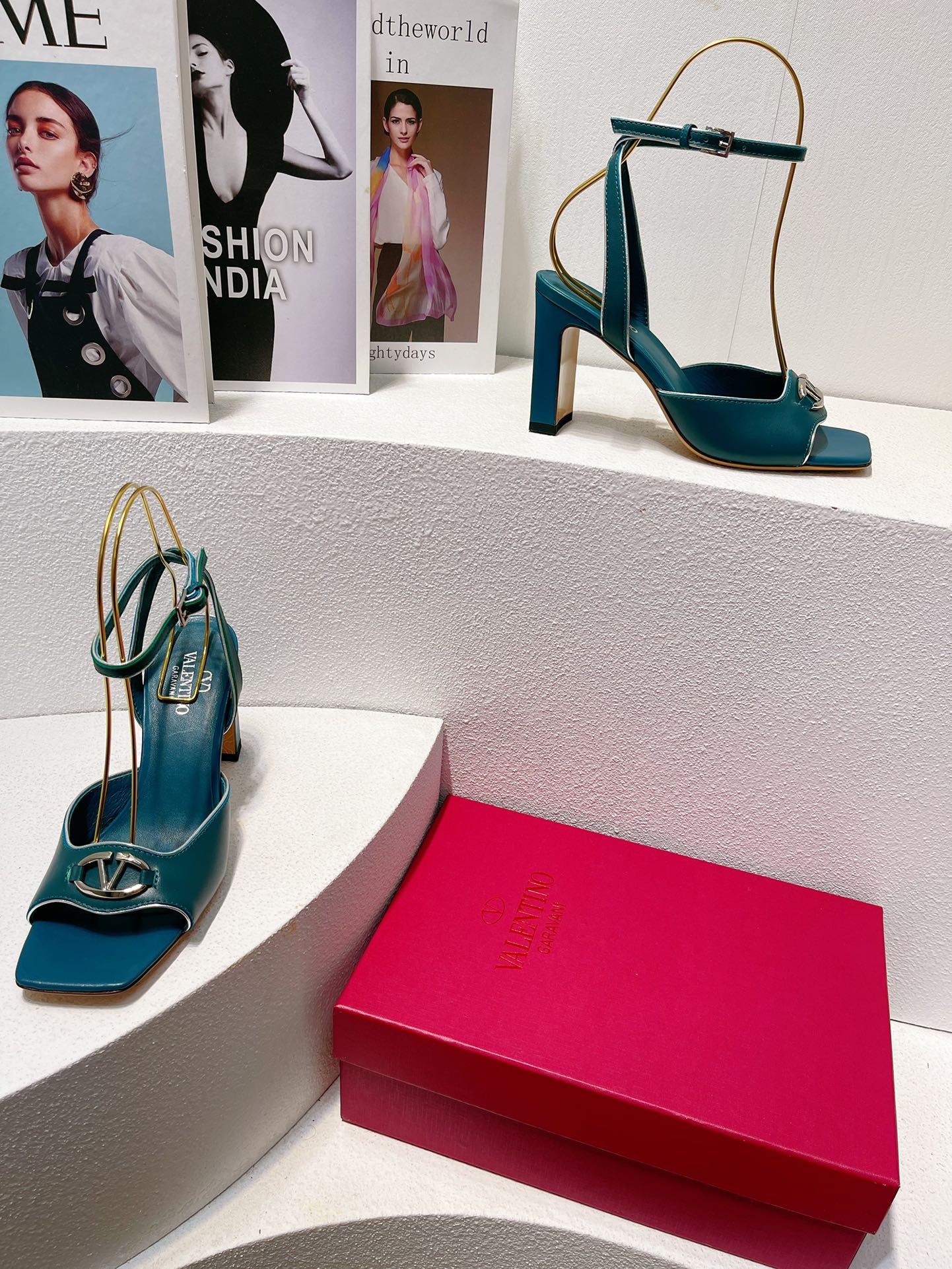 VT Sandals Heels 70mm Emerald Green Cowhide 292780