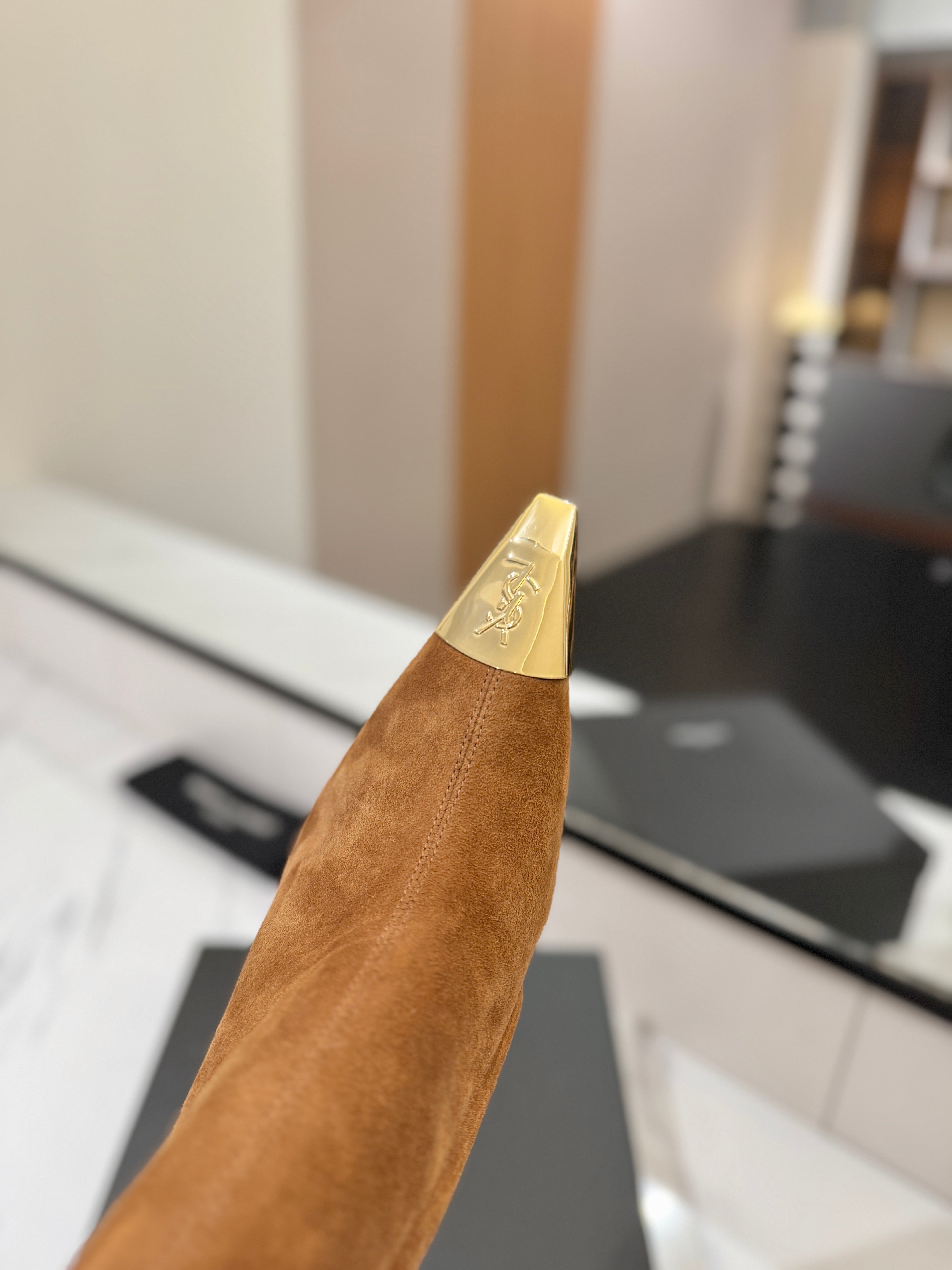 YSL 25 Metal Toe Short Boot Brown Gold Suede 520786