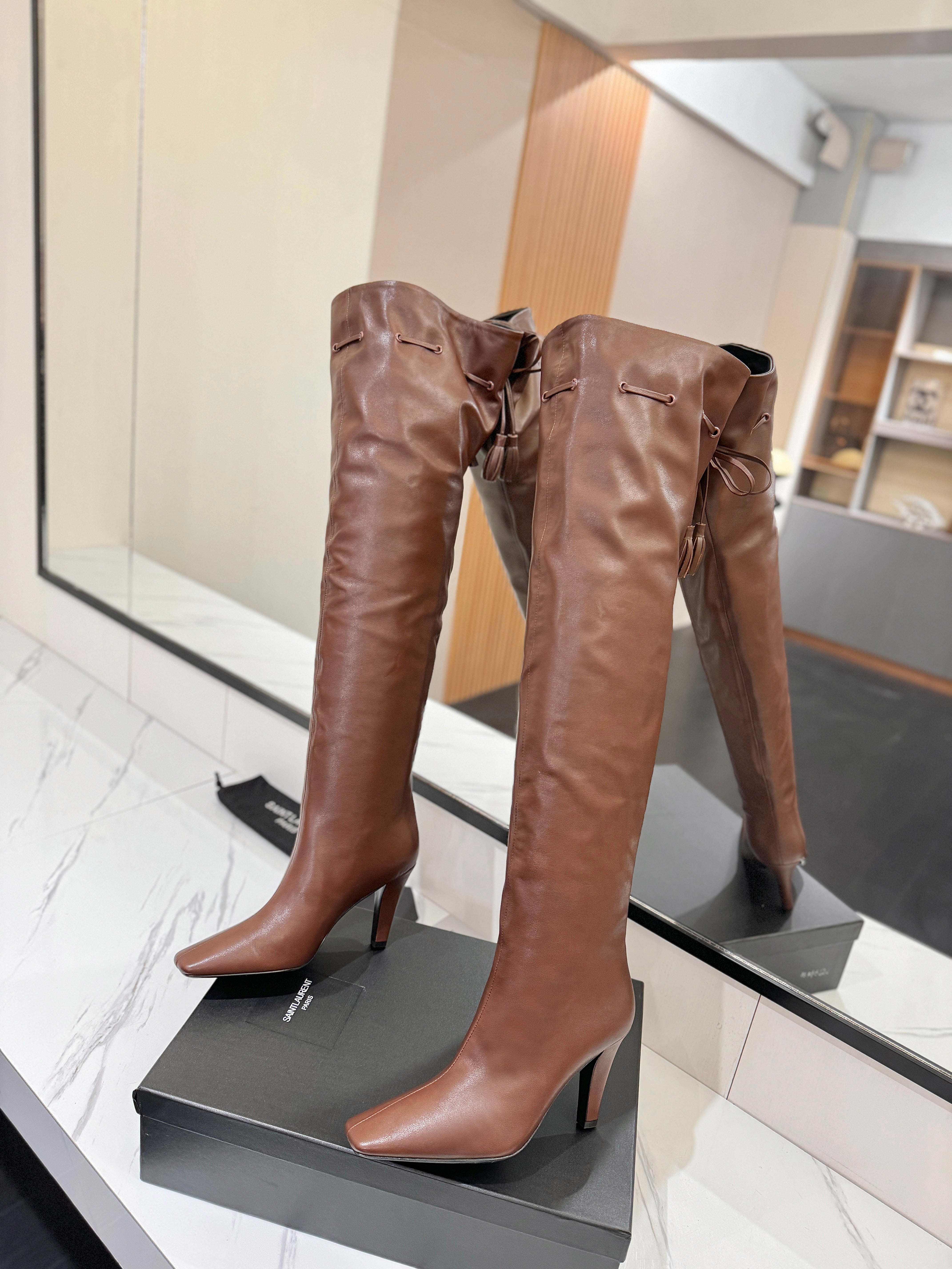 YSL 25 Over-the-Knee Martin Boot Brown Calfskin 520783