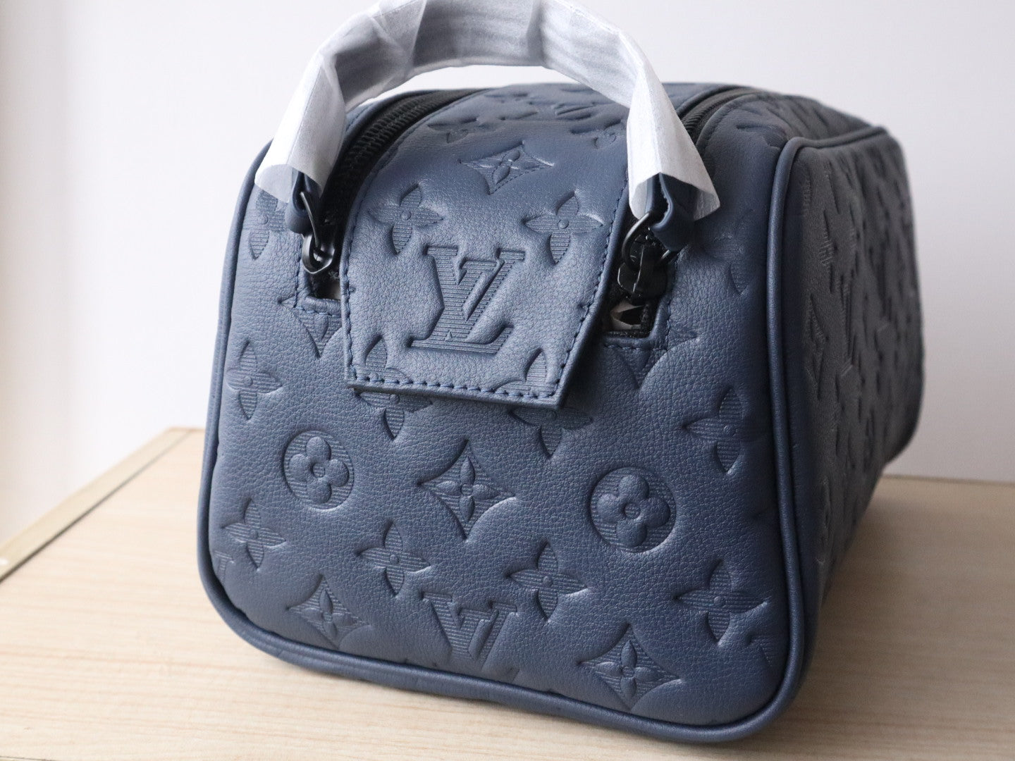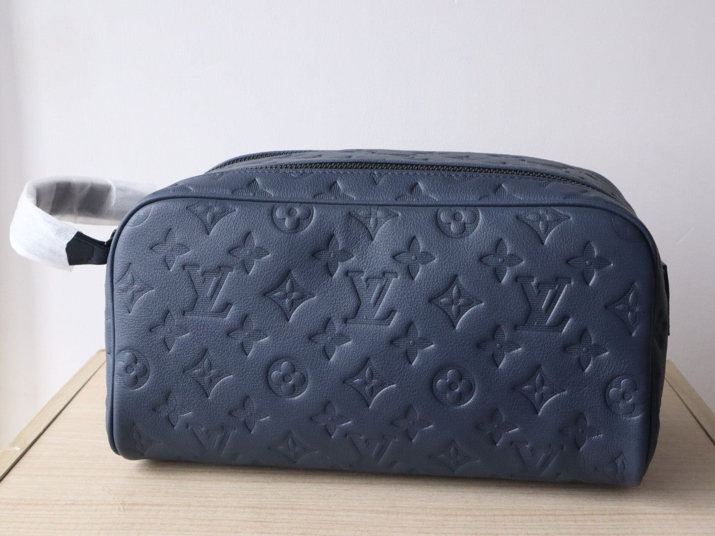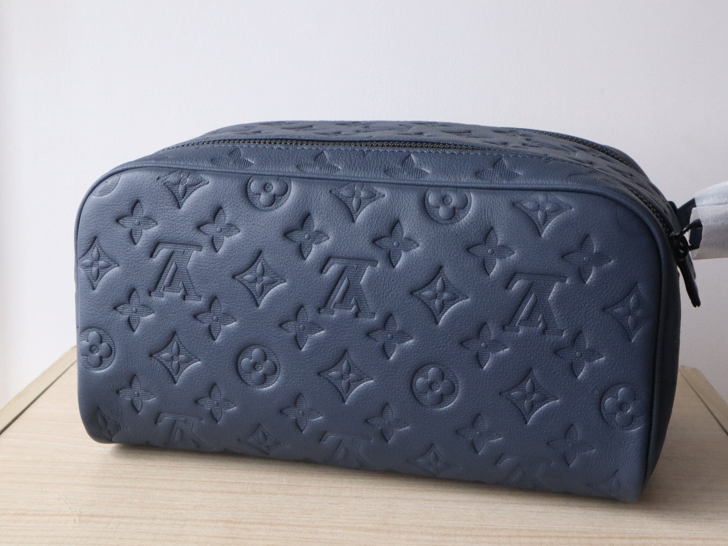 LV Dopp Kit Toiletry Bag Navy Blue Monogram Calfskin & Cowhide247596