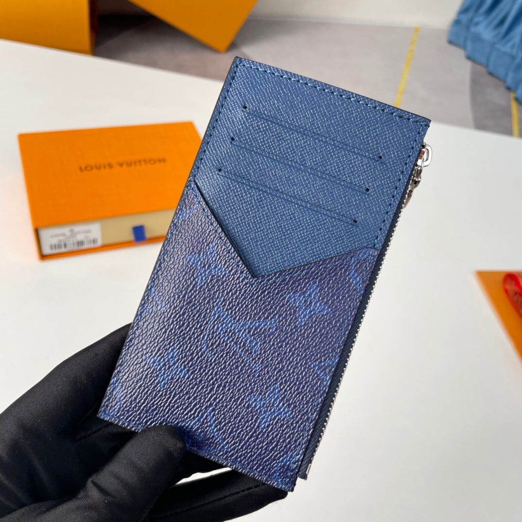 LV M30271 Coin Card Holder Blue Monogram Canvas 221508