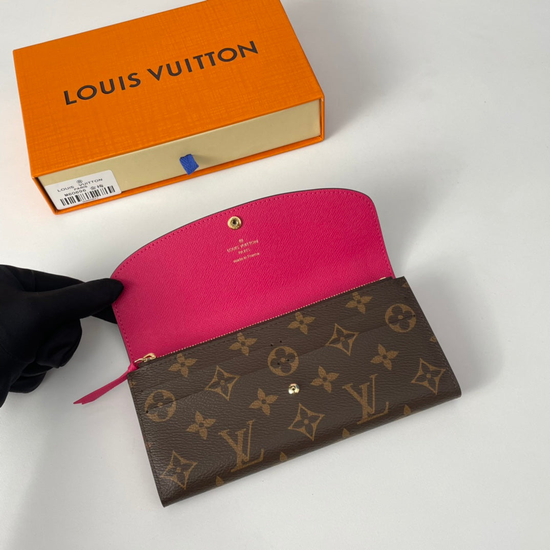 LV M60696 Emilie Wallet Brown Plum-red Monogram Canvas 221663